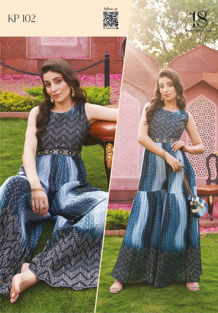 18 Attitude Kitty Party Fancy Western Jump Suit Collection, There beautiful collection of Indo-Western Jump Suit with fabric is Chinon crush with lining solid colours to vibrant prints, floral motifs, geometric patterns, or even intricate embroideries and attractive colours also.