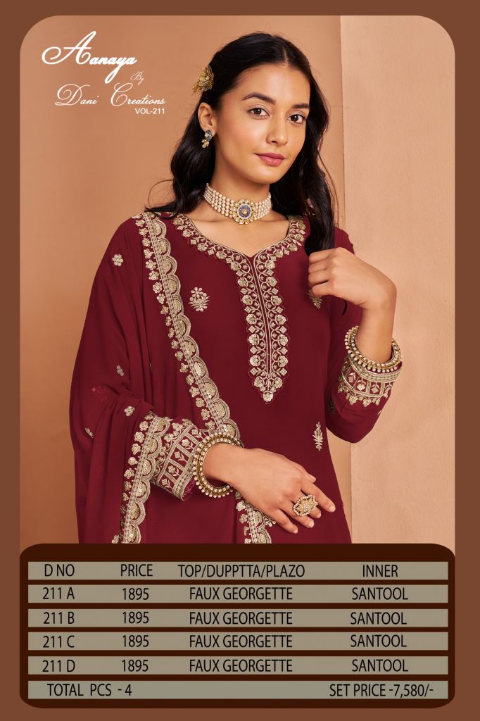 Aanaya Vol 211 Georgette Salwar Kameez Collection Full Catalog