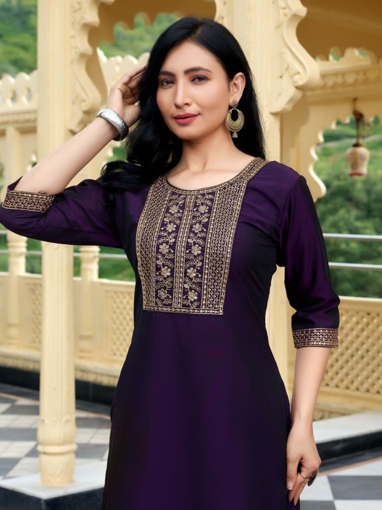 Aanchi Sangita Rangeela Silk Fancy Straight Cut Embroidered Kurti Collection Full Catalog