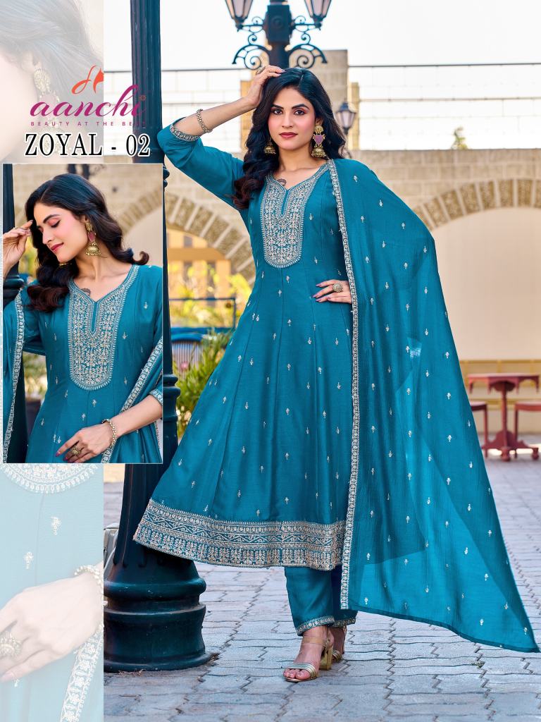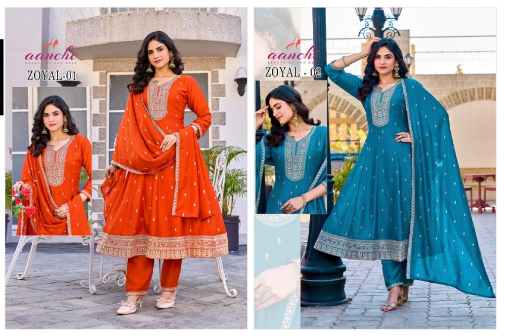Aanchi Zoyal Vichitra Silk Embroidered Kurti With Bottom Dupatta Full Catalog