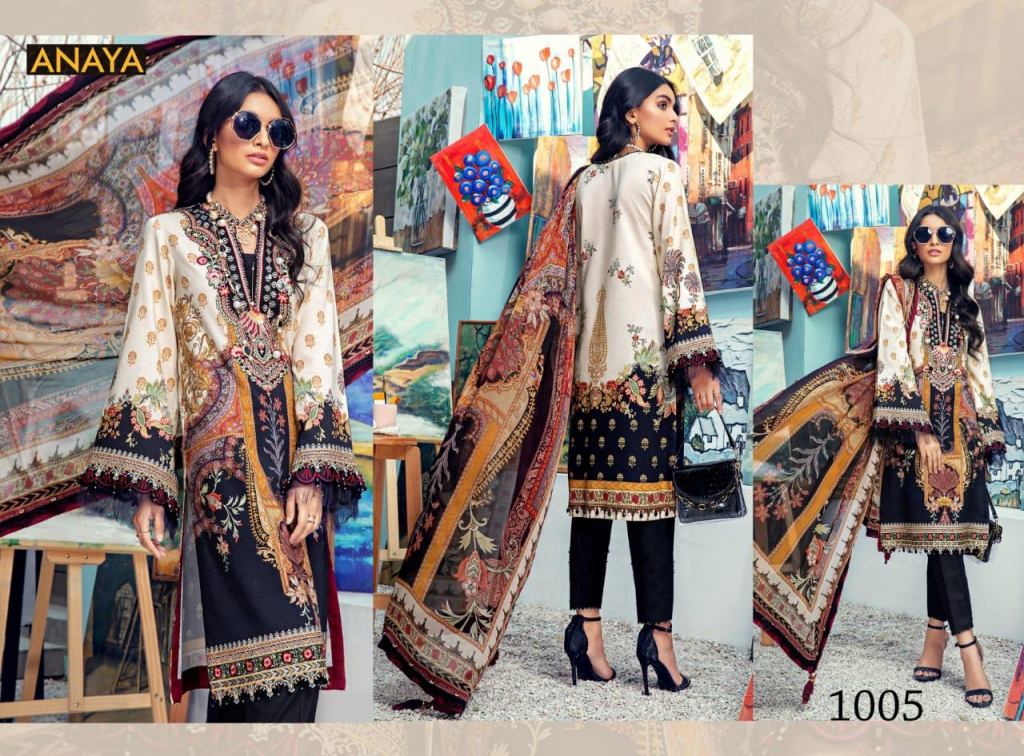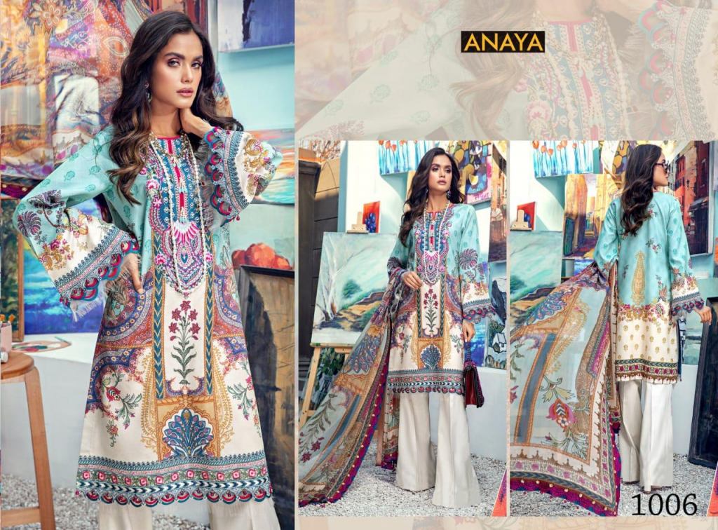 Agha Noor Aanaya jam satin cotton Karachi style dress Buy Printed Multicolor Cotton Materials, this catalog fancy print, and top fabric is Jam Satin Cotton (2.50 Mtr) and the bottom is Semi Lawn (2 Mtr) and dupatta is Pure Mal Mal Printed (2.25 Mtr).*Pakistani Copy*