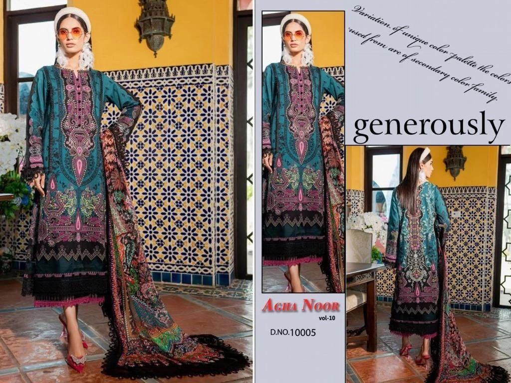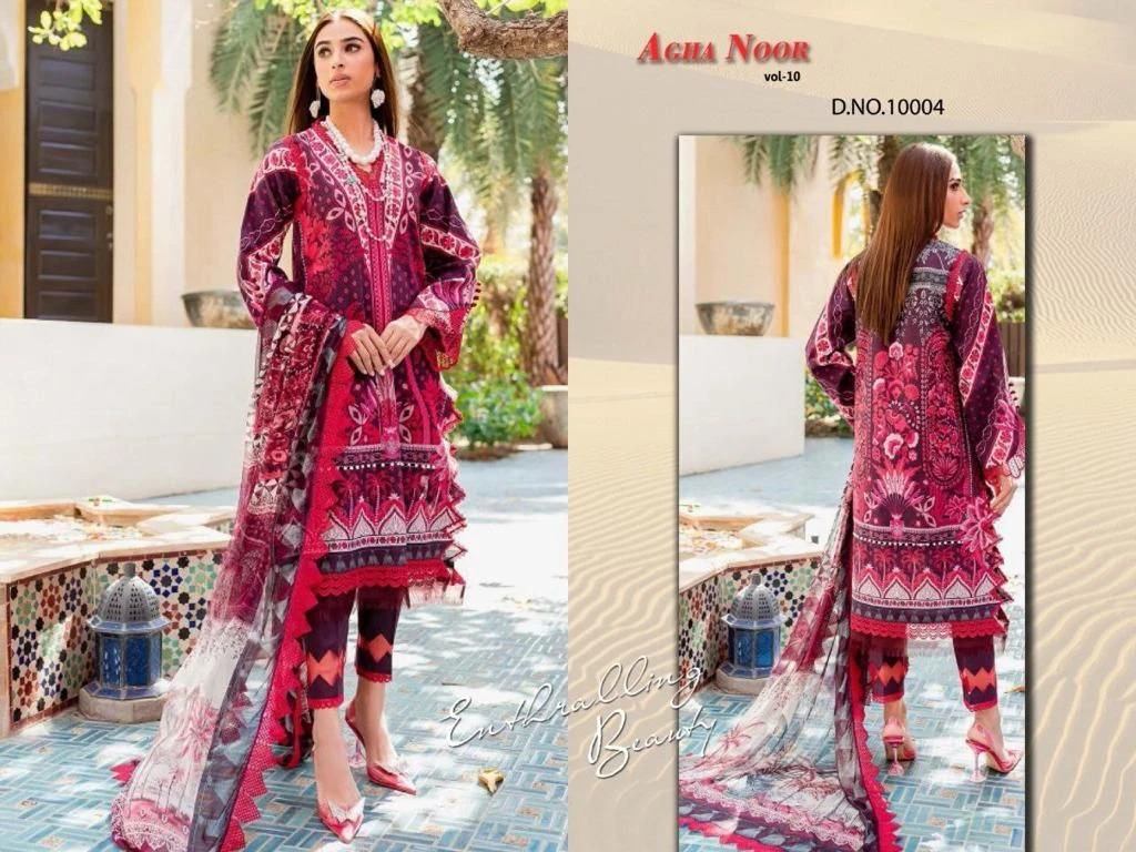 Buy Agha Noor Vol 10 Lawn Cotton Karachi Dress Material Collection Available At Wholesale Rate