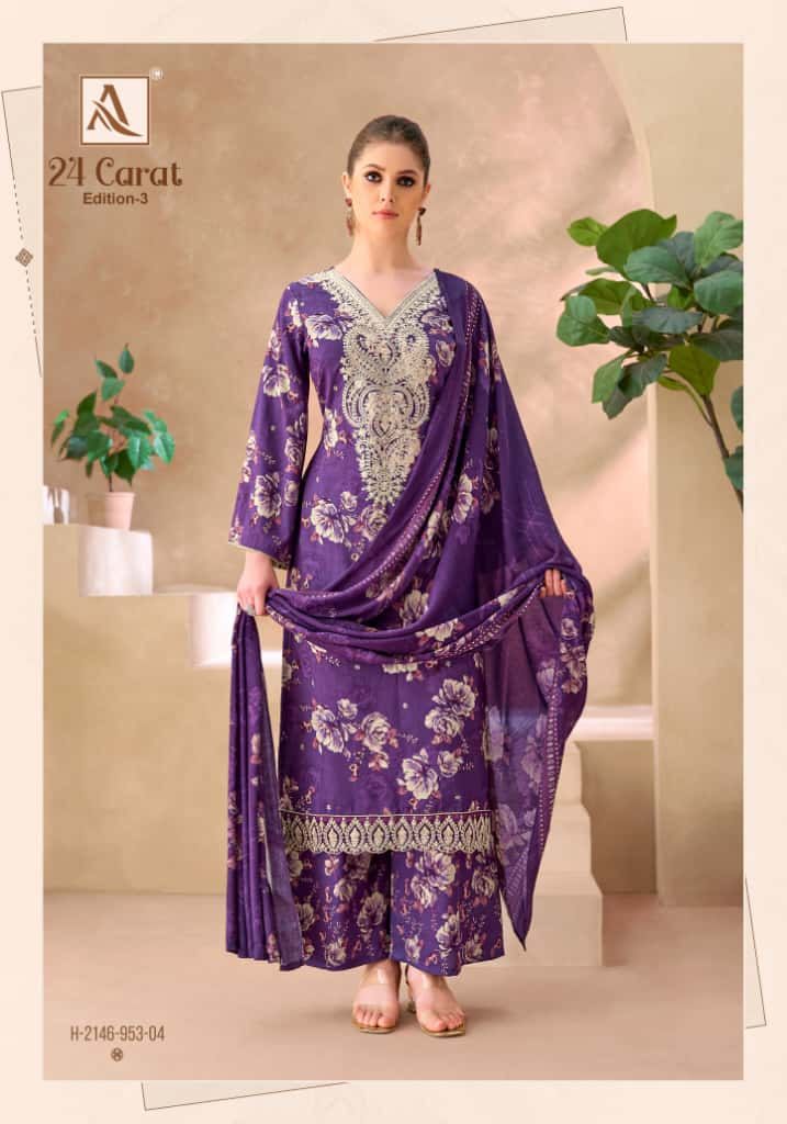 Alok 24 Carat Edition 3 Viscose Rayon Print Embroidery Dress Material Full Catalog