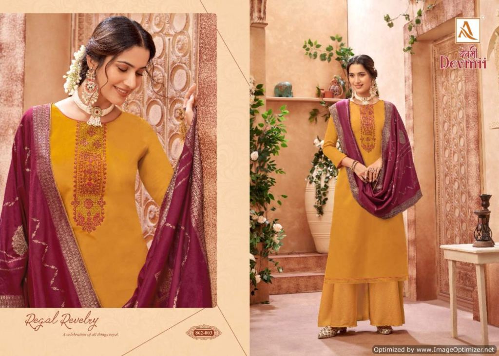 | NAME : | Alok Devmii Jam Cotton Embroidery Designer Dress Material catalog |