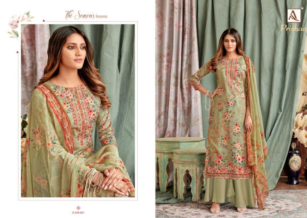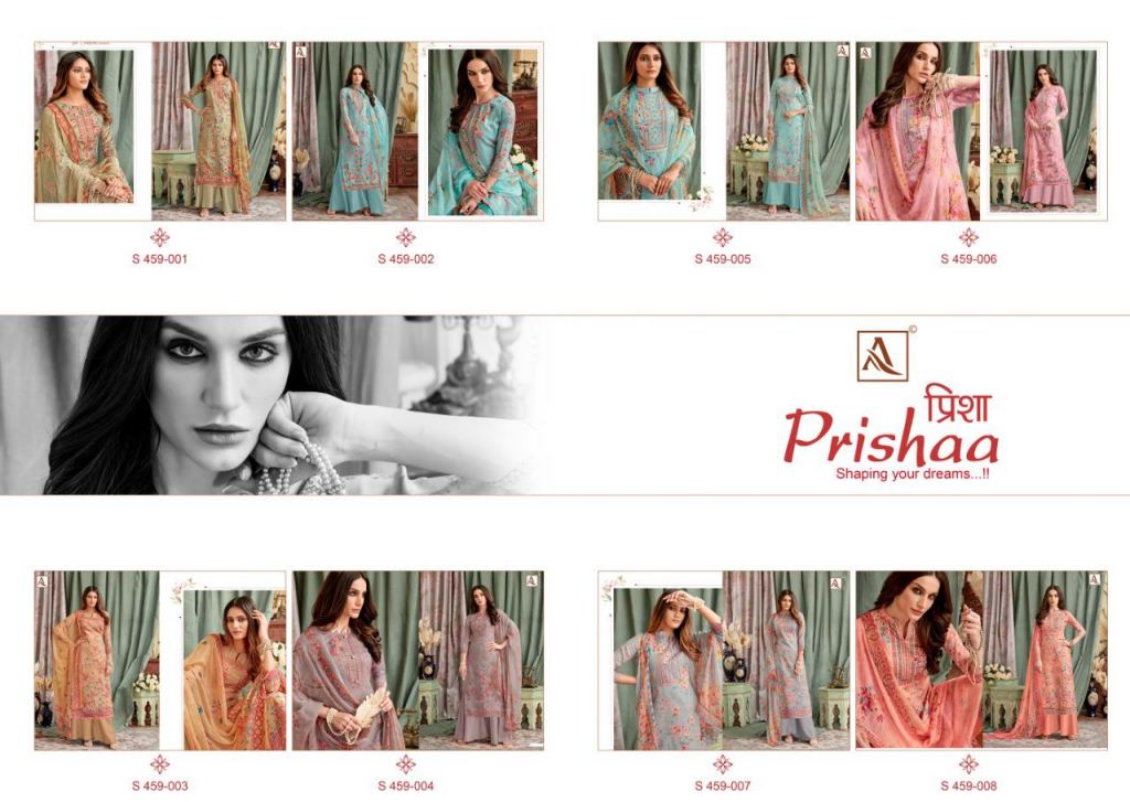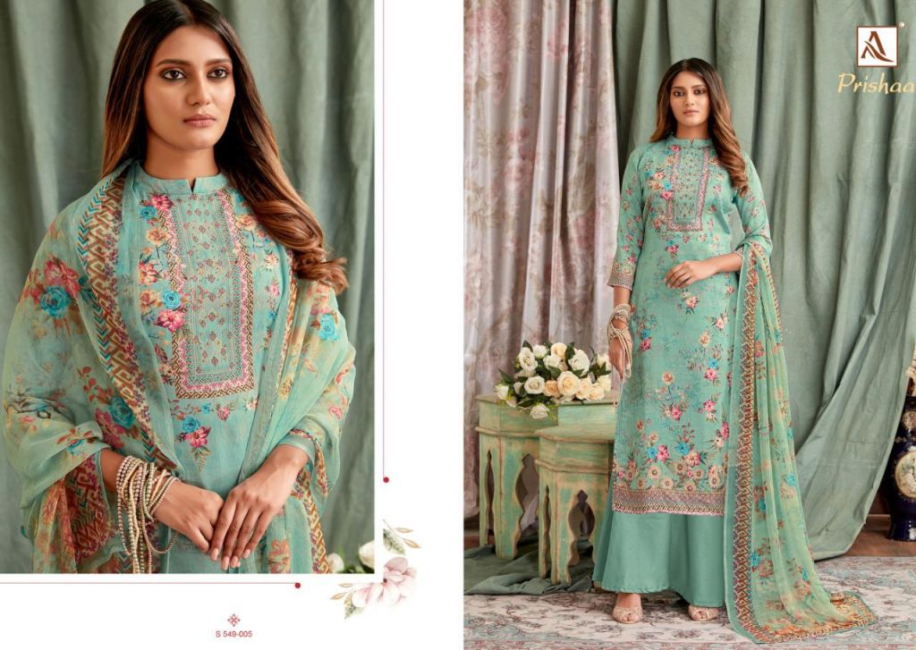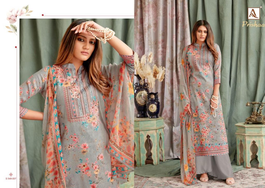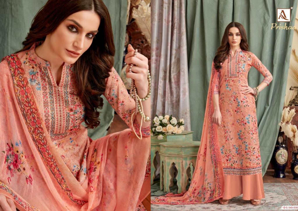 Alok presents Prishaa Printed Dress Material, this catalog top is Pure Cotton Jam fancy Digital Print with attractive Swarovski Diamond Work (Cut 2.50mtr) with the bottom is Pure Cotton Solid (Cut3.00mtr) and dupatta is Pure Bemberg Chiffon Box Pallu Print dupatta (Cut2.25mtr).