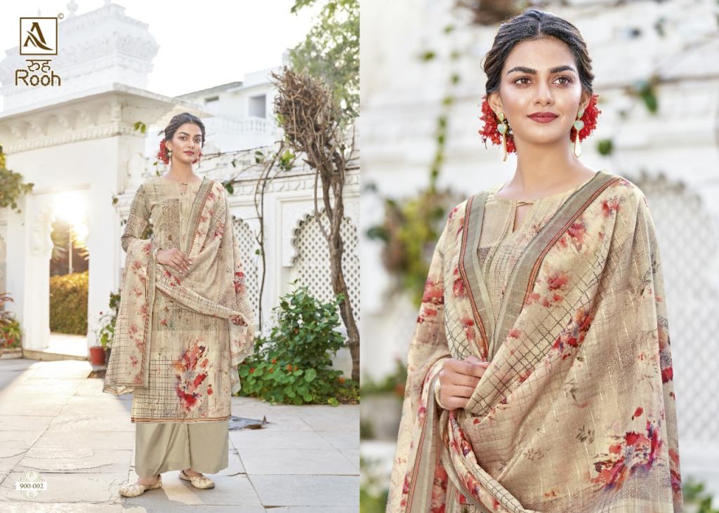 Alok Rooh catalog Muslin Cotton Dress Material Buy Wholesale Rate, this catalog fabric is Pure Maslin Cotton Self Pattern Digital Print | Bottom: Pure Cotton Solid | Dupatta: Pure Maslin Self Embroidery Pattern Digital Box Pallu Print.