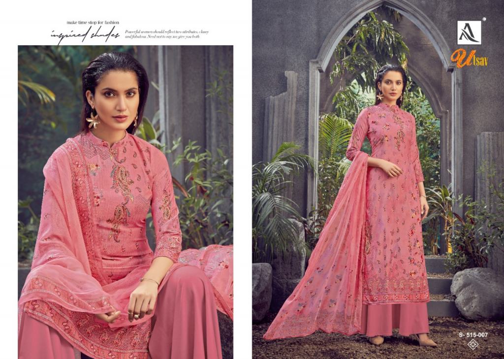 Alok Utsav vol 2 Designer Velvet Festive Wear Dress Material Catalog, this catalog top fabric is Pure Viscose Velvet Digital Print With Swarovski Diamond Work | Bottom: Pure Wool Pashmina Solid | Dupatta: Pure Viscose Bemberg Box Print Pallu Dupatta.