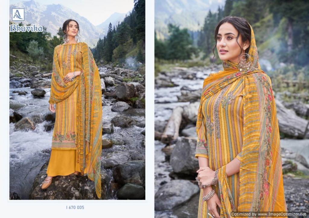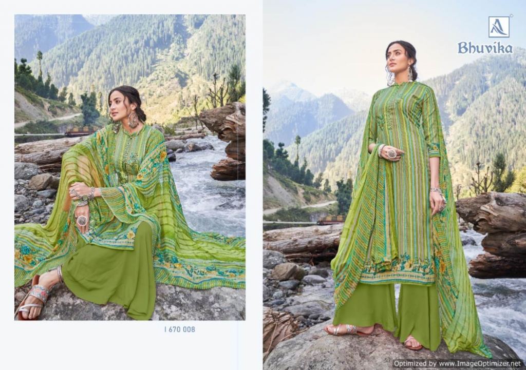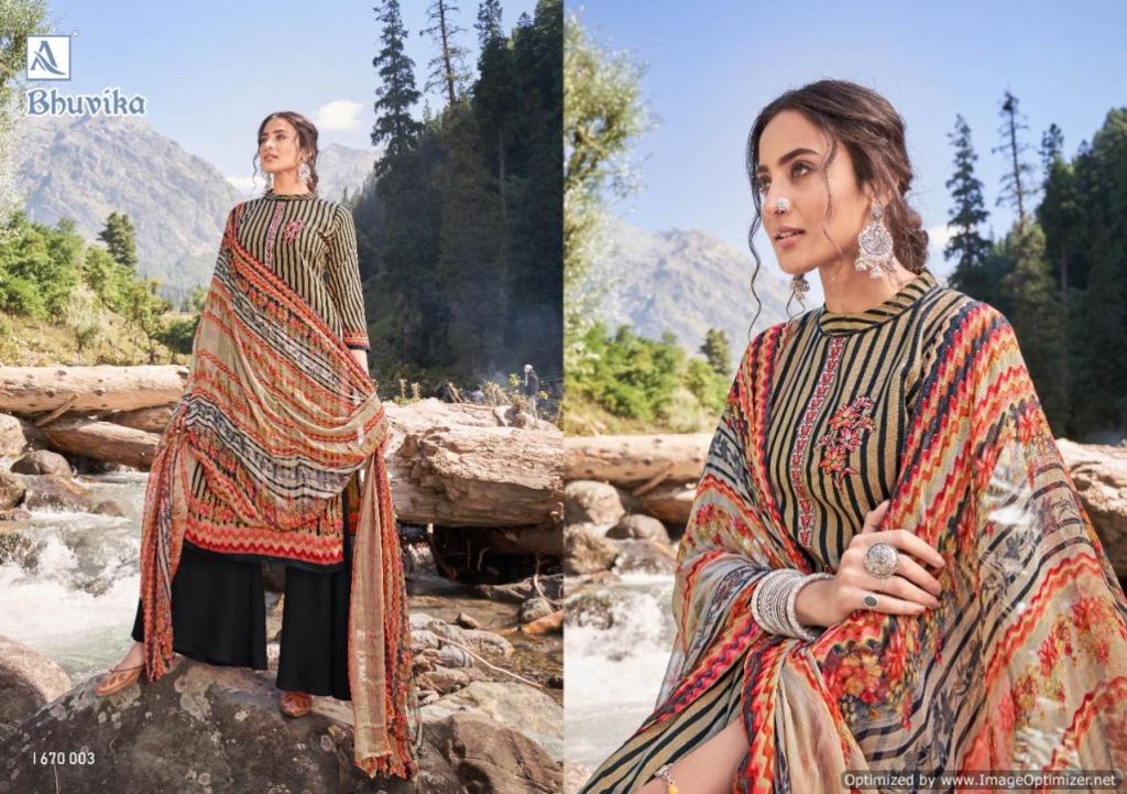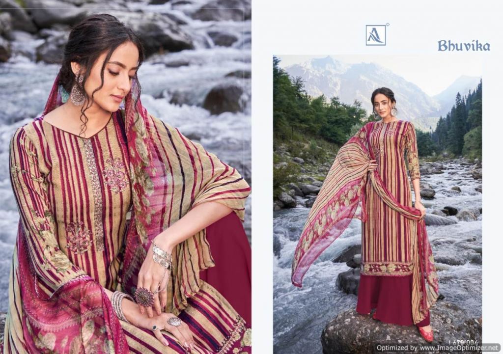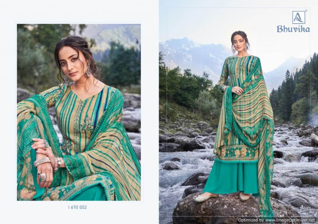 Alok presents Bhuvika Designer Dress Material,this cat;log pashmina digital Print with Thread embroidery Work with bottom are dupatta also printed .