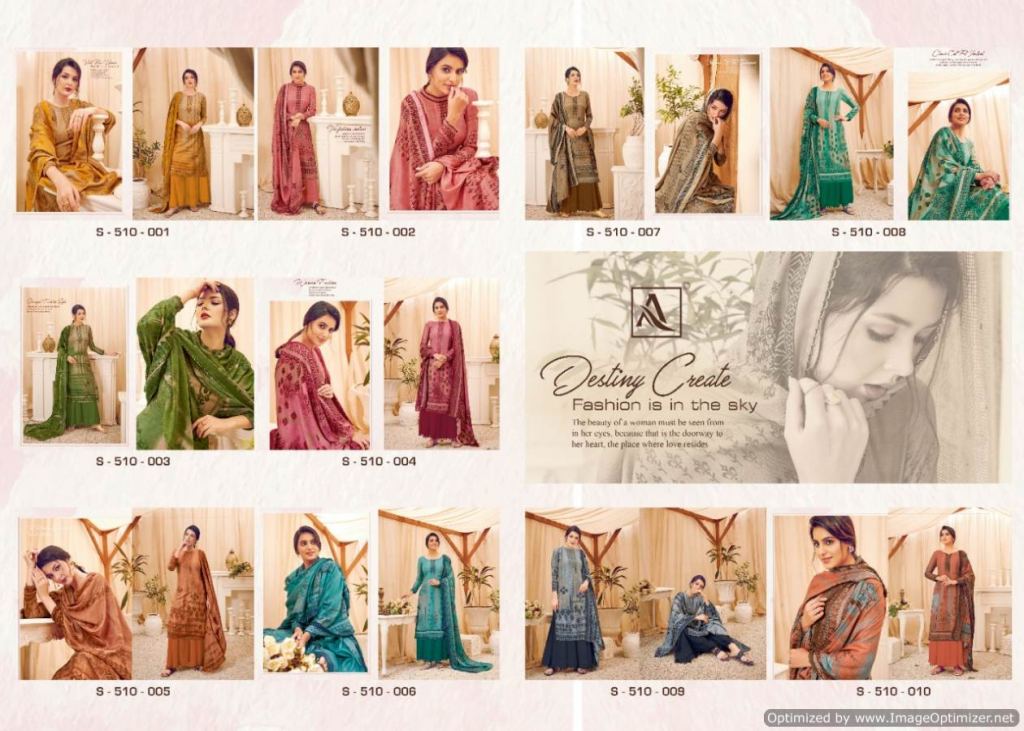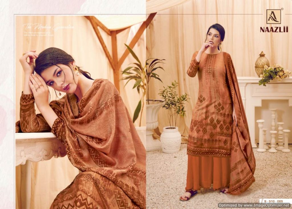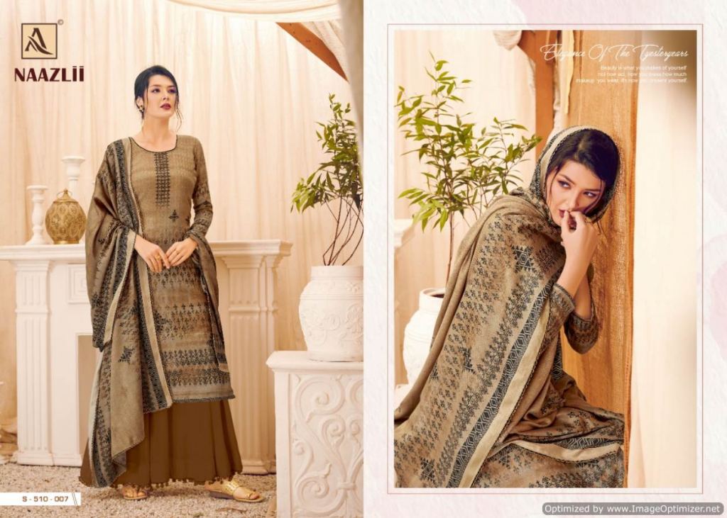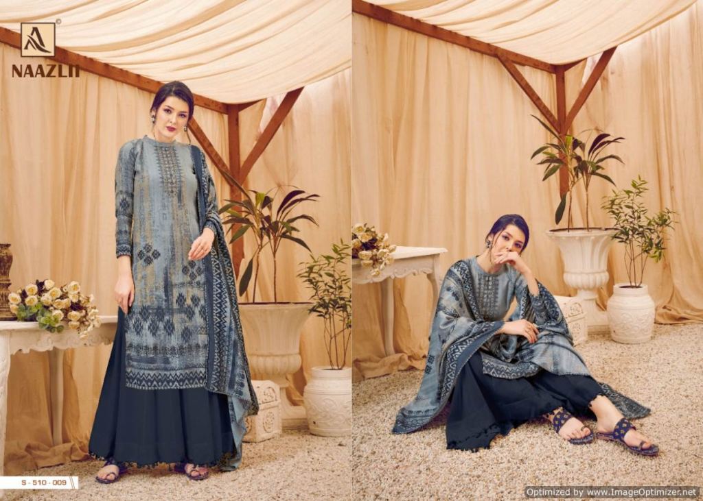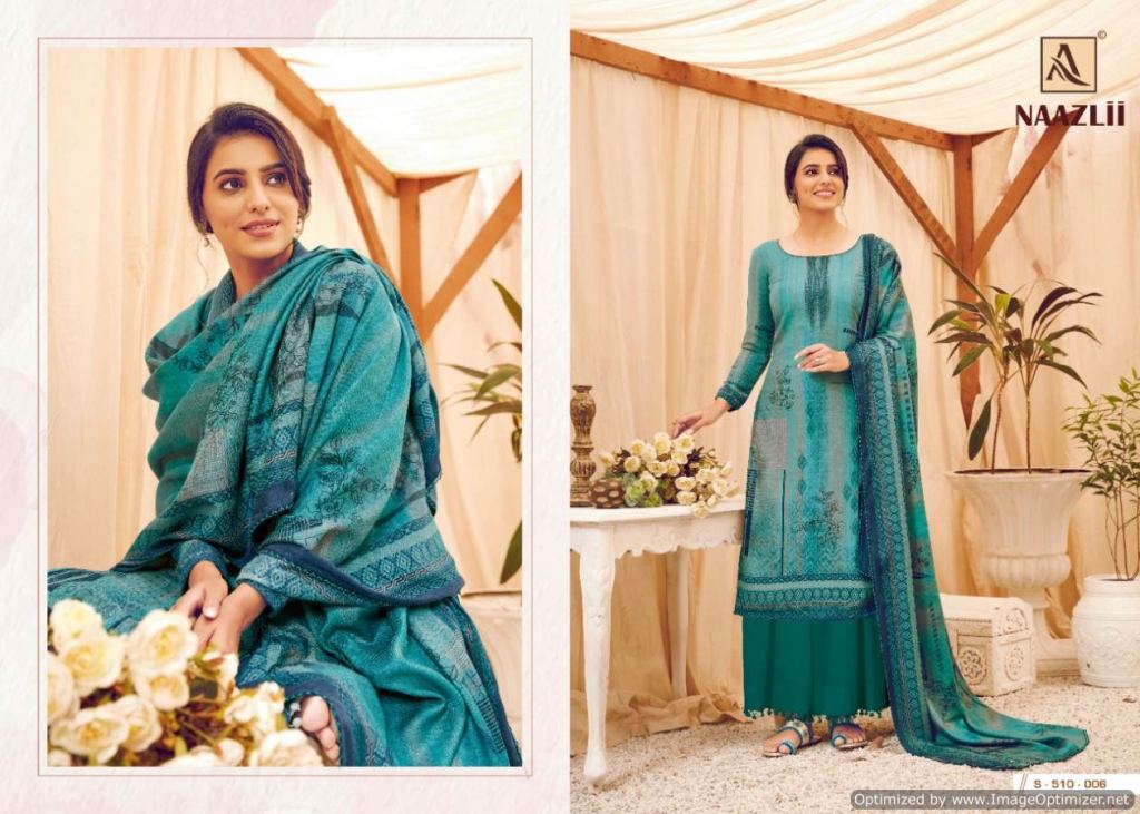 Alok presents Naazlii Designer Dress Material,this index is in the texture of pashmina . this assortment is a sum of the different ten various designs and shading. this list all are distinctive shading and designs too,this catlog top is pashmina with Digital Print with Swarovsk and Diamond Work withjh bottom are Pure Wool Pashmina Solid and dupatta are Pure Wool Pashmina Print