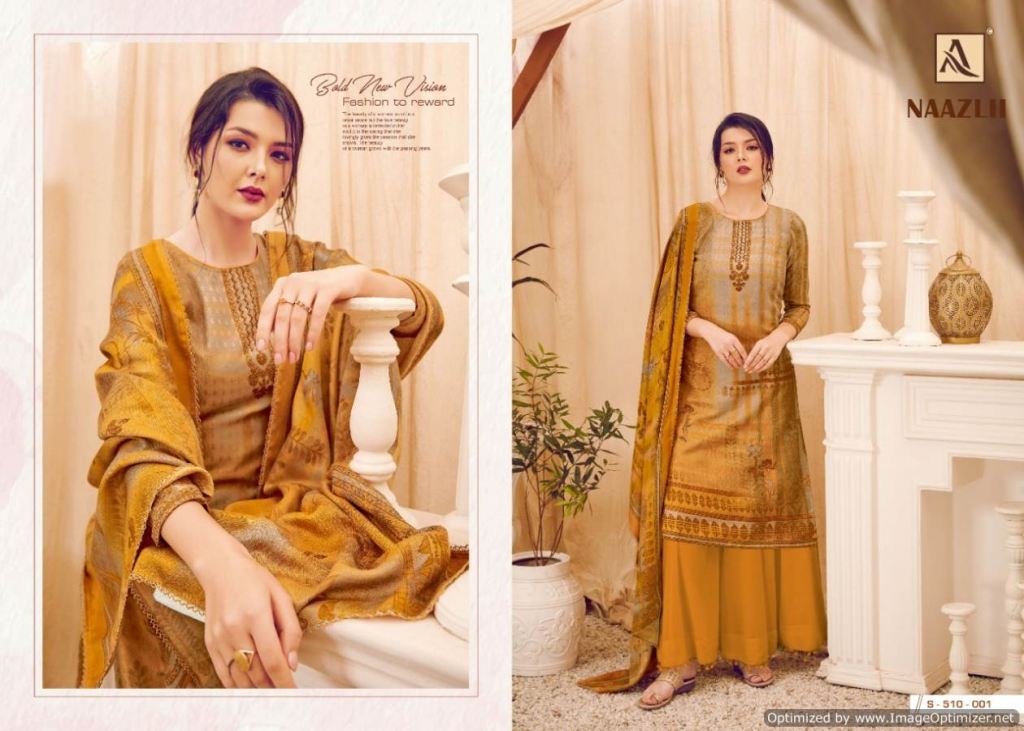 Alok presents Naazlii Designer Dress Material,this catlog fabric is Pashmina with Digital Print with Swarovski Diamond Work.