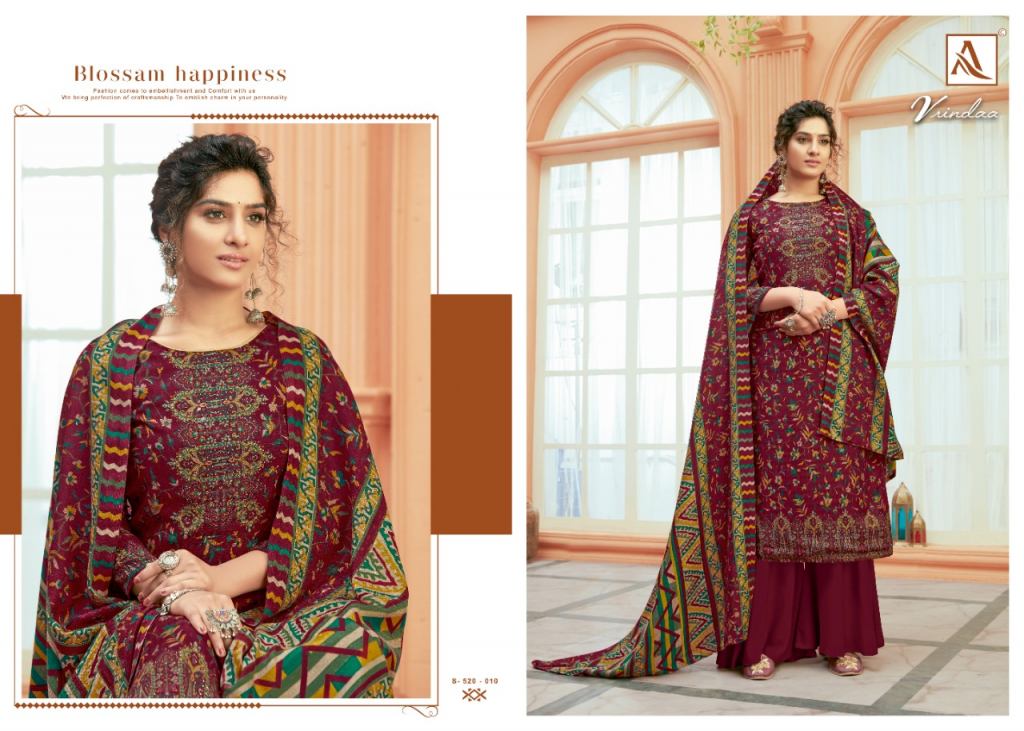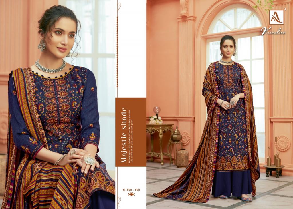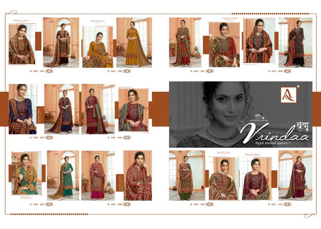 Alok presents Vrindaa Designer Dress Material, this catalog fabric is pashmina with work all are also.