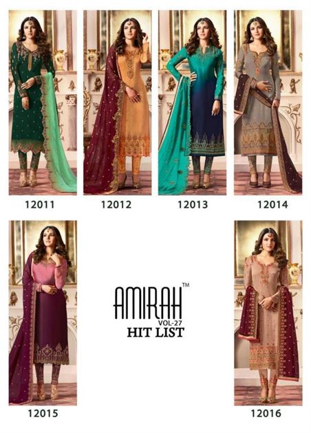 Amirah Vol 27 Hitlist churidar salwar kameez catalog with best satin georgette fabric collections.