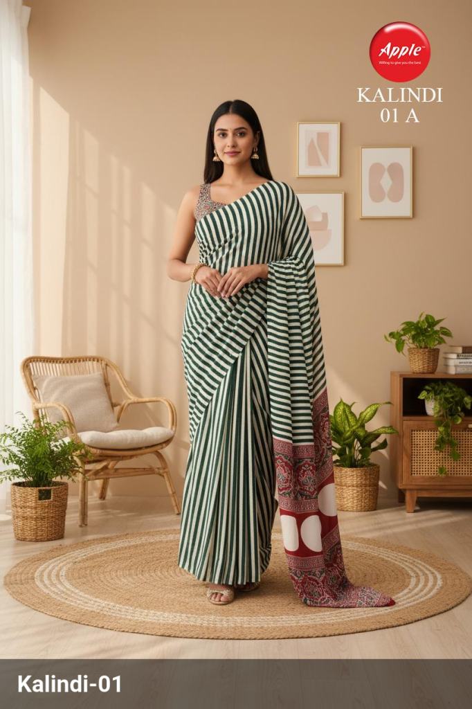 Apple Kalindi Crepe Green Printed Party Wear Saree Collection Full Catalog