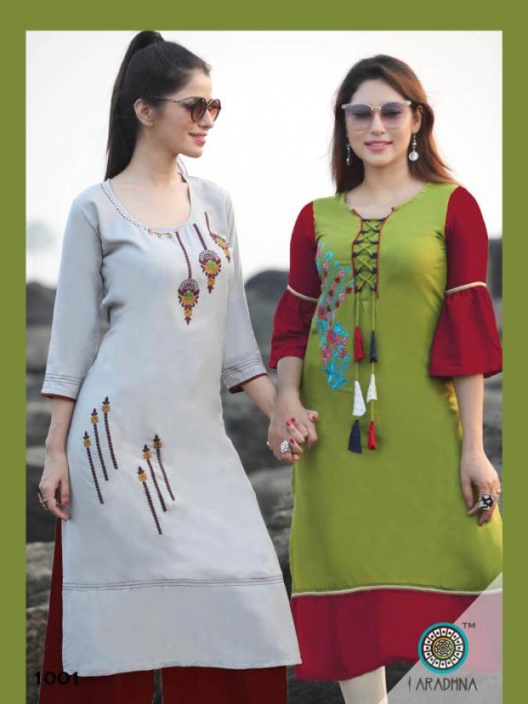 Aradhna Present Queen vol 2 Kurtis catalog. this catalog is Kurtis some Embroidery work that are opposite color with that are multiple colors.