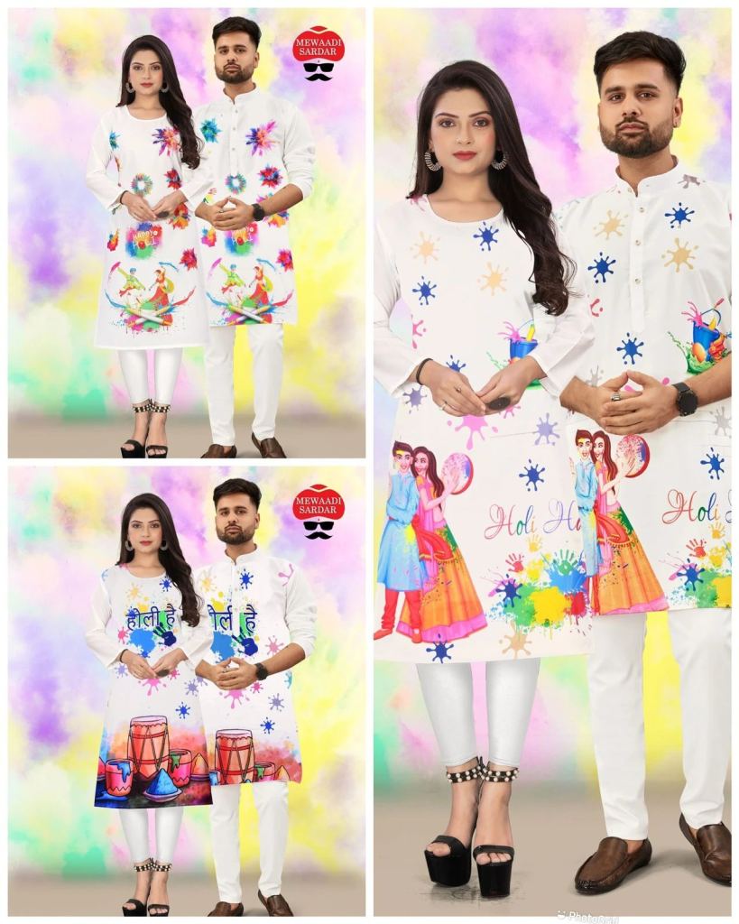 | NAME : | Balam Pichkari Beautiful White Printed Holi Festive Wear Couple Kurti Collection |