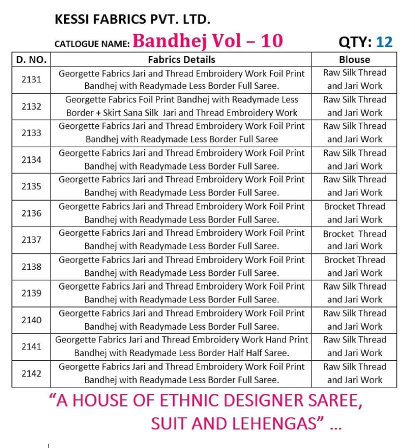Bandhej vol 10 by kessi fashion traditional sarees catalogue with fancy fabric collections.