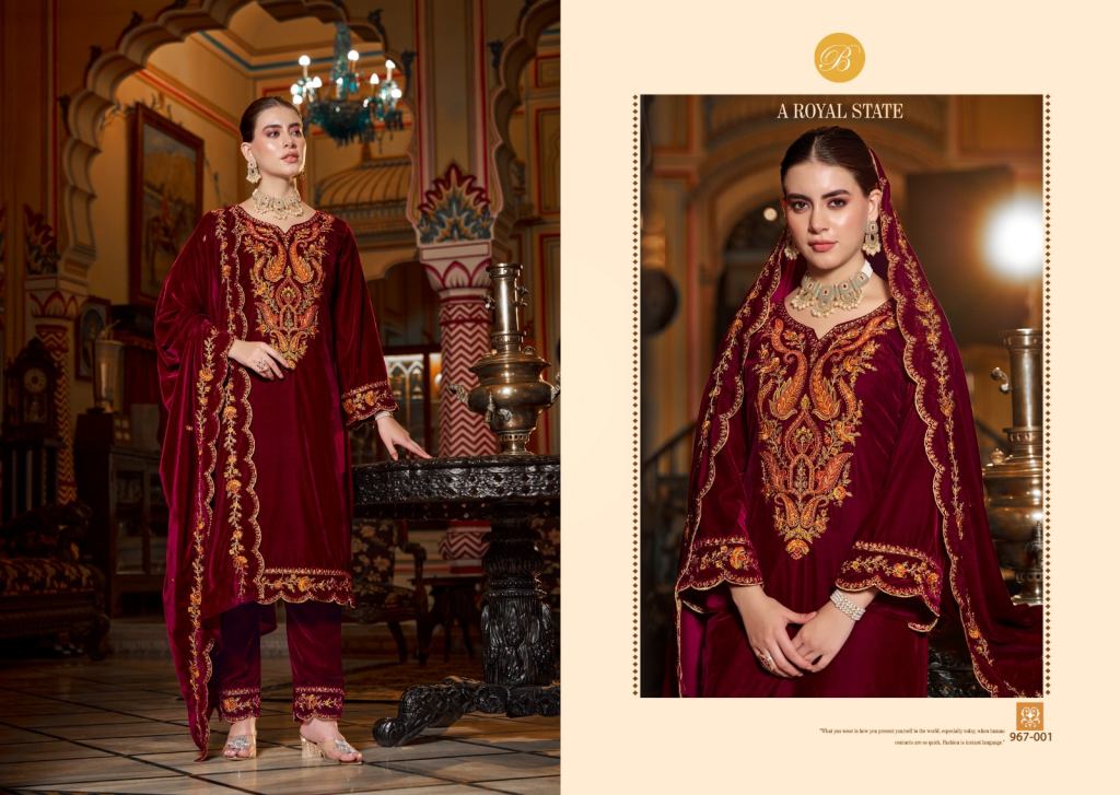 Belliza Gulzaar 967 Series Velvet Fancy Dress Material Collection Full Catalog