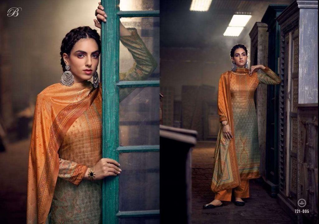 Belliza Heritage Pure Handloom Silk With Exclusive Work Dress Material Catalog, this catalog fabricPure Handloom Silk With Exclusive Swarovsky Work. (2.50 Mtrs) and the bottom fabric is Pure Santoon. (3 Mtrs) and dupatta fabric is Pure Chinon Digital Print. (2.30 Mtr).