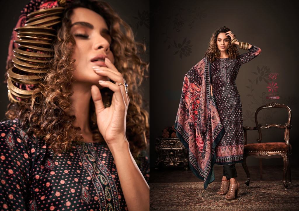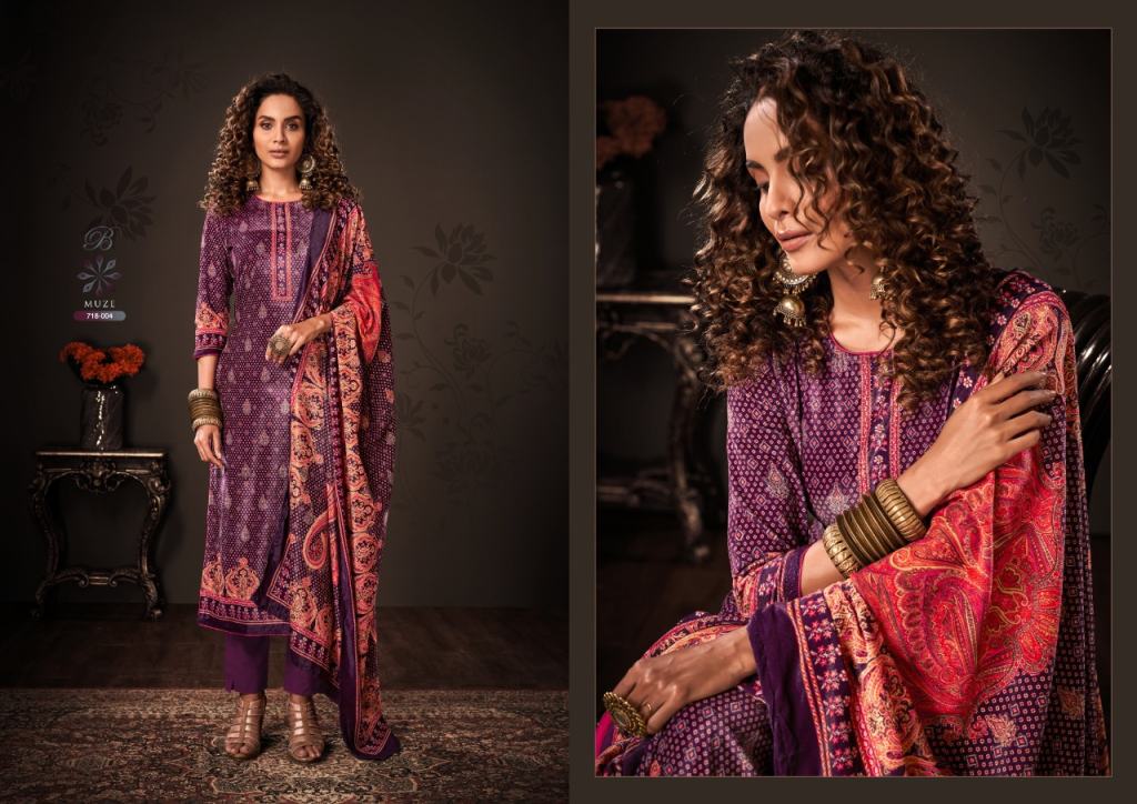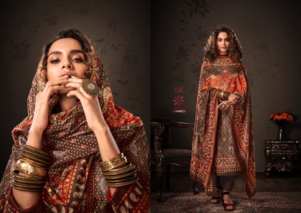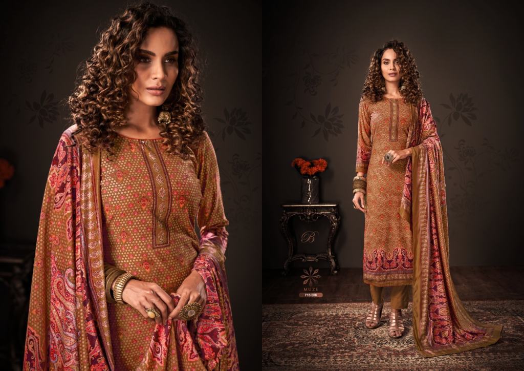 Belliza Muze Velvet with Exclusive Digital Prints Dress Material catalog, this catalog fabric is 100% Pure VELVET with Exclusive Digital Prints and Swarovsky work. (2.50 mtrs) and bottom fabric is 100% Pure Pashmina Twill. (3 mtrs) and dupatta fabric is 100% Pure VELVET Stole Digital Print. (2.30 mtr).