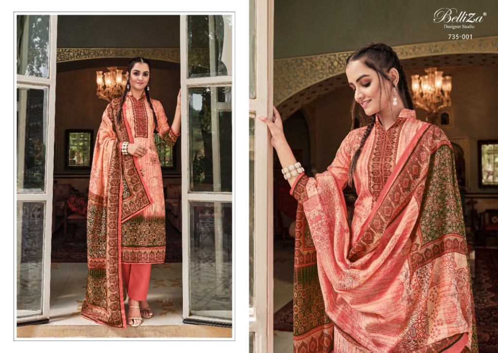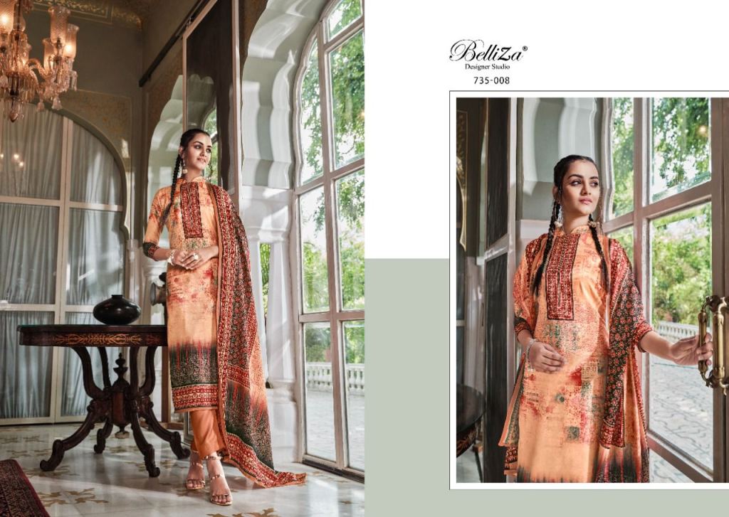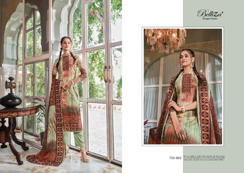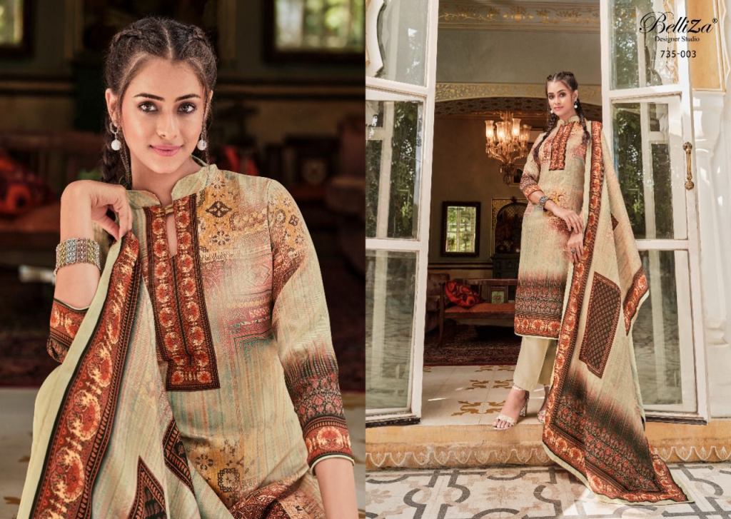 Belliza Nisarg Premium Pashmina Woollen Dress Material, this catalogue fabric is Pure Wool Pashmina Exclusive Digital Prints (2.50 Mtr Apx) | Dupatta: Pure Wool Pashmina Digital Print Box Pallu Shawl (2.30 Mtrs Apx) | Bottom: Pure Pashmina Spun (3 Mtrs Apx).