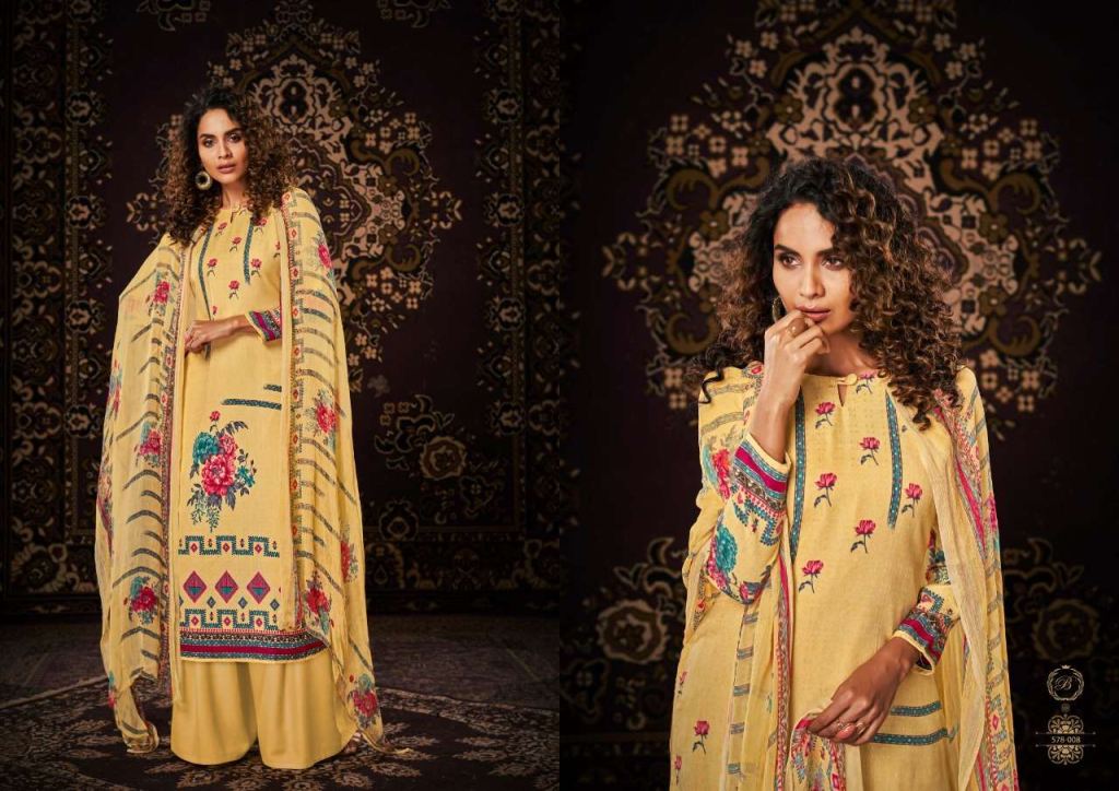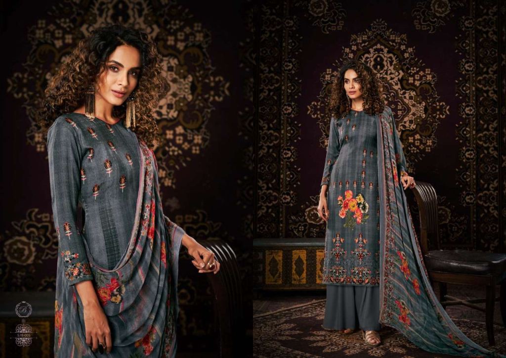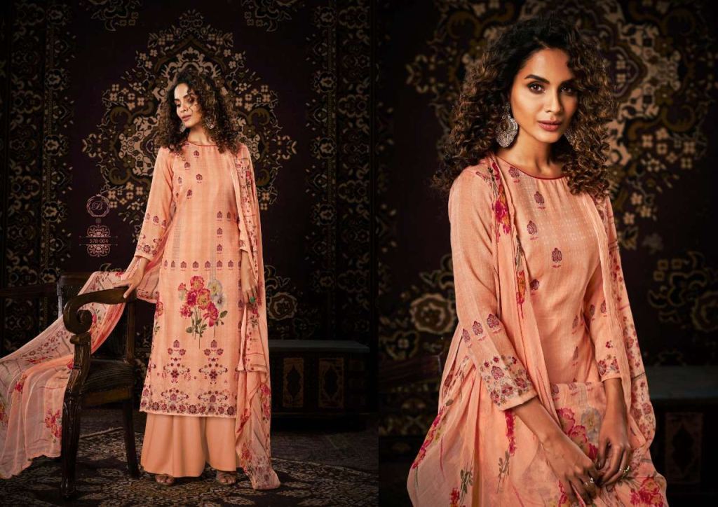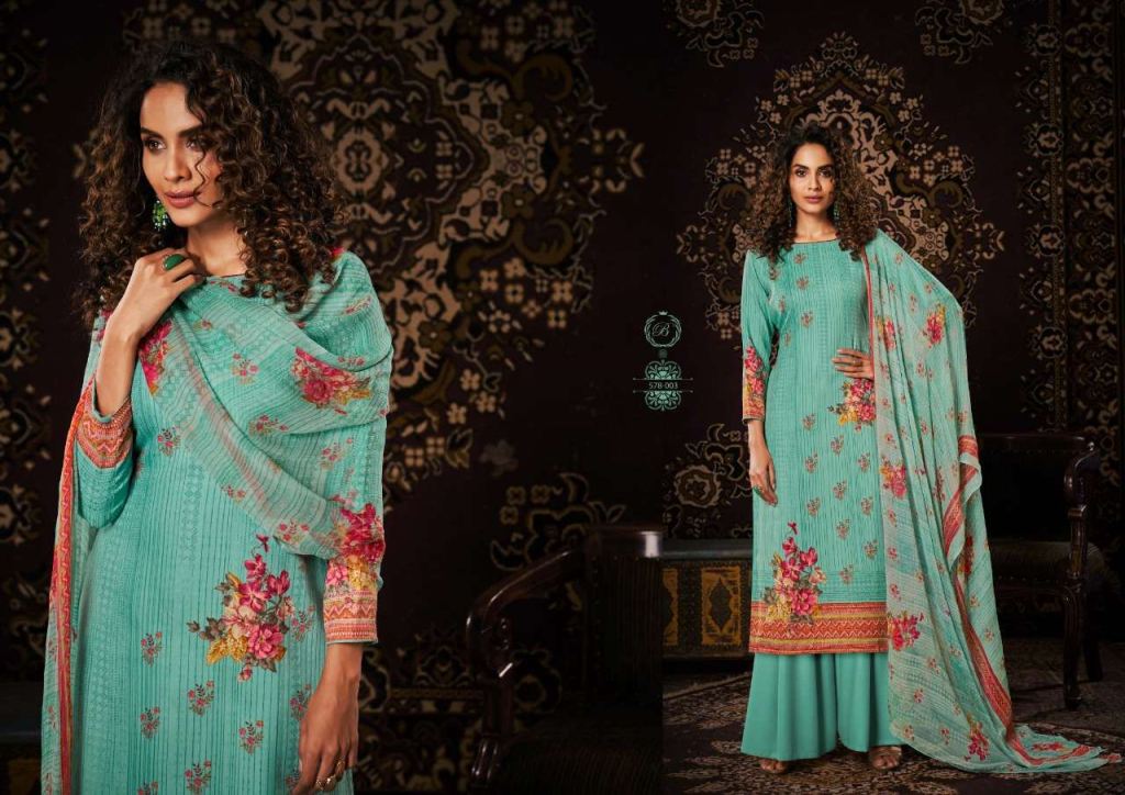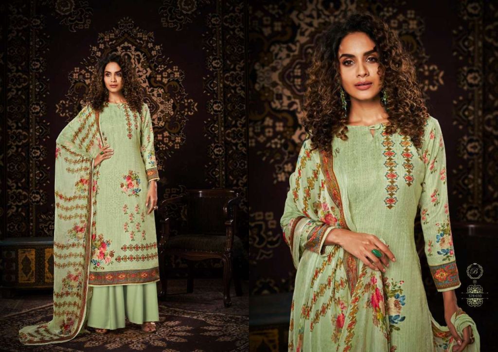 Belliza Noor Pure Pashmina Digital Print Dress Material Catalog, this catalog fabric is 100% Pure Pashmina Digital Print. (2.50 Mtrs) and the bottom fabric is Pure Pashmina Spun (3 Mtrs) with dupatta fabric is 100% Pure Bemberg Pure Dupatta (2.30 Mtr).