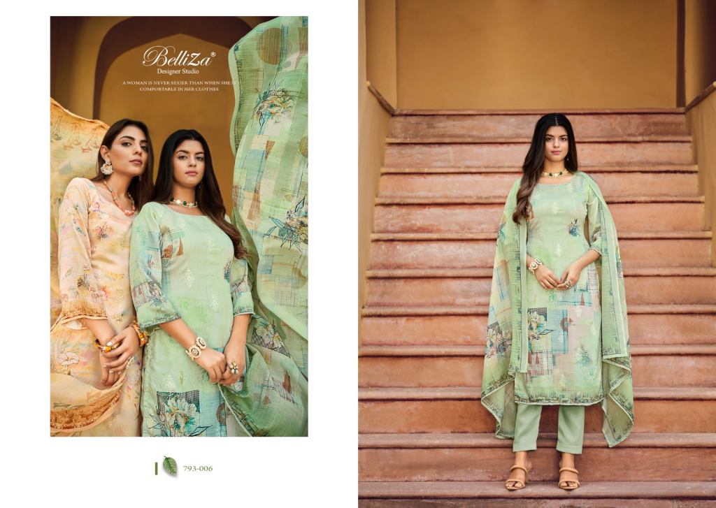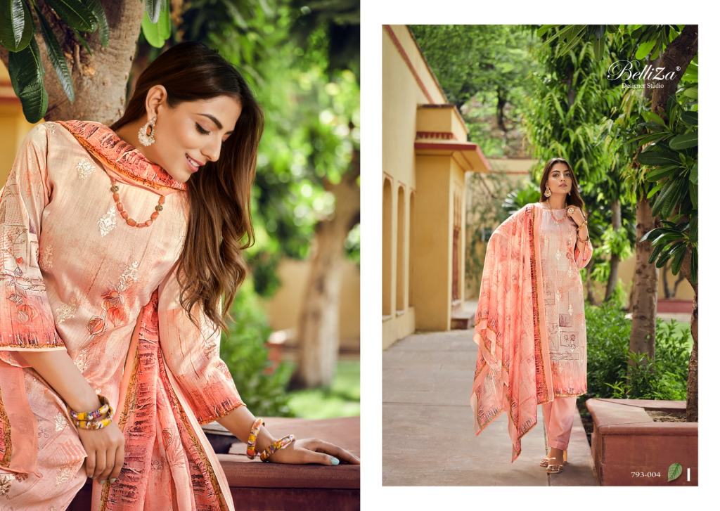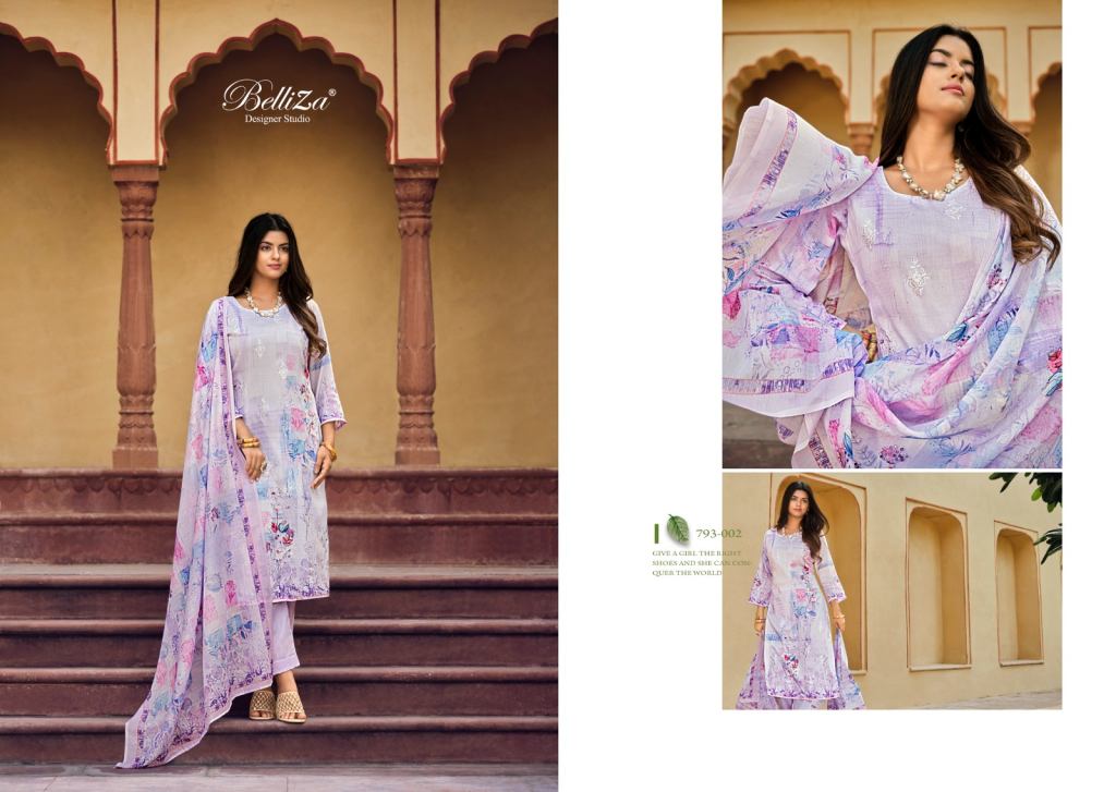 Belliza Orchid 793 Jam Cotton Designer Dress Materials, this catalogue fabric is Jam Cotton Digital Print With (2.50 mtrs apx) with Dupatta fabric is Cotton Muslin 4 Side Digital Print (2.30 mtrs apx) and Bottom fabric is Cotton Salwar (3 mtrs apx) and cotton dress material is a versatile and comfortable choice for creating a variety of stylish and breathable garments.
