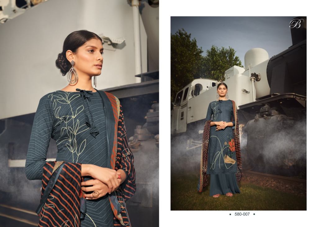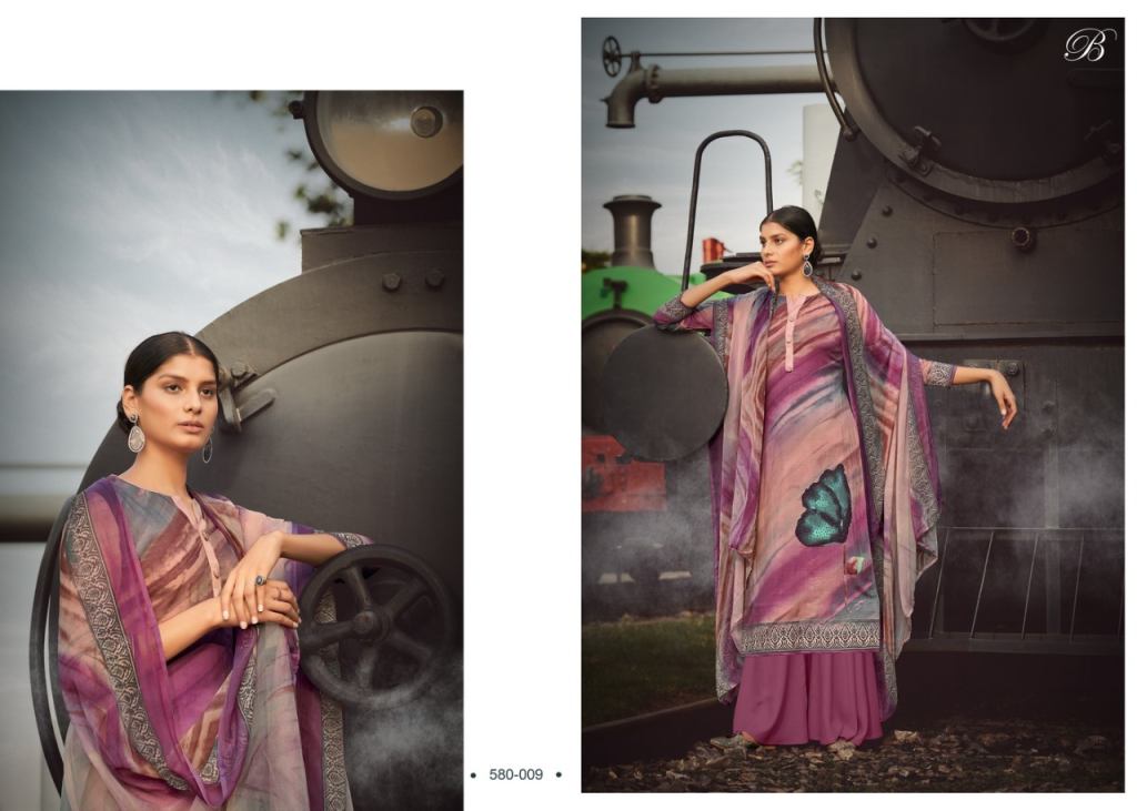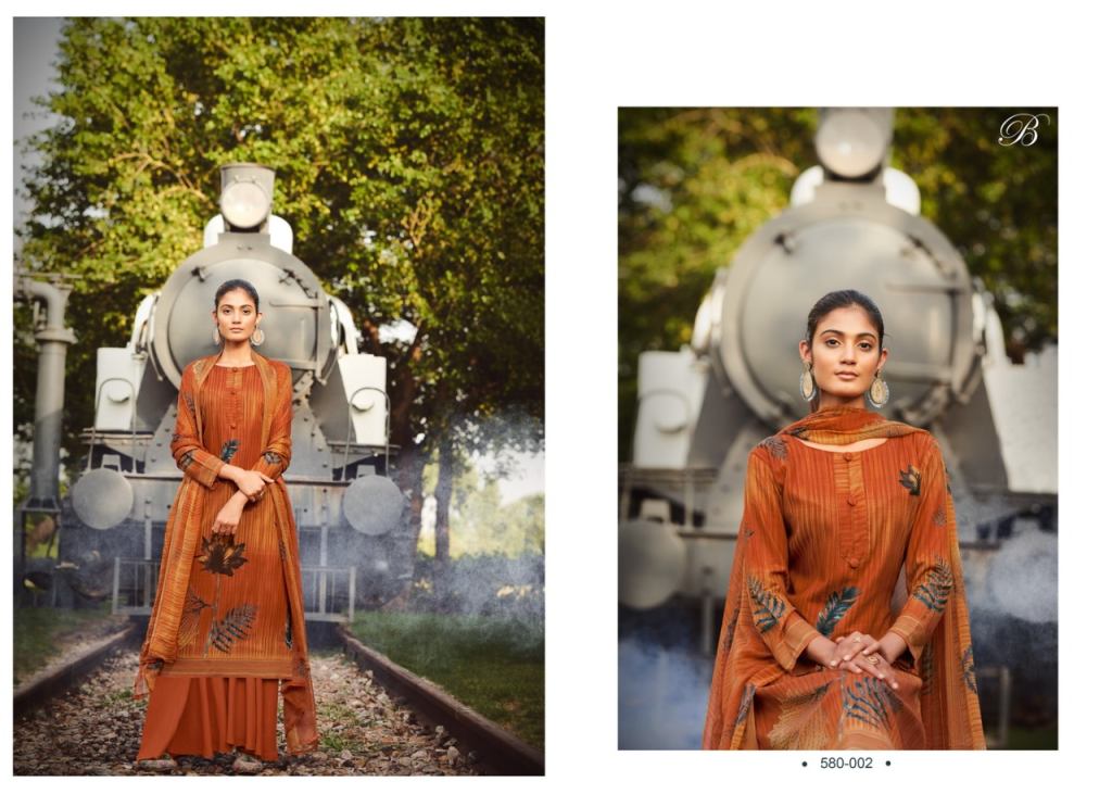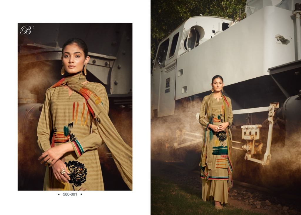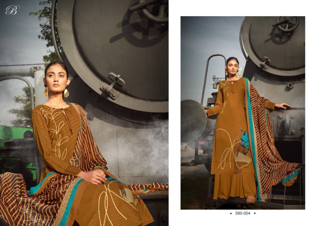 Belliza Ruhani vol 4 Premium Woollen Winter Wear Pashmina Catalog, this catalog fabric is 100% Pure Pashmina with Digital Style Prints (2.50 mtrs) | Dupatta: 100% Pure Pashmina Shawl with 4 side lace (2.30 mtr) | Bottom: Pure Pashmina Spun (3 mtrs).