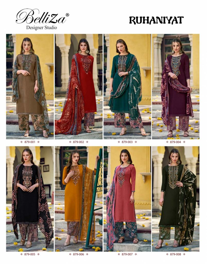 Belliza Ruhaniyat Viscose Rayon Slub Embroidery Dress Material Full Catalog
