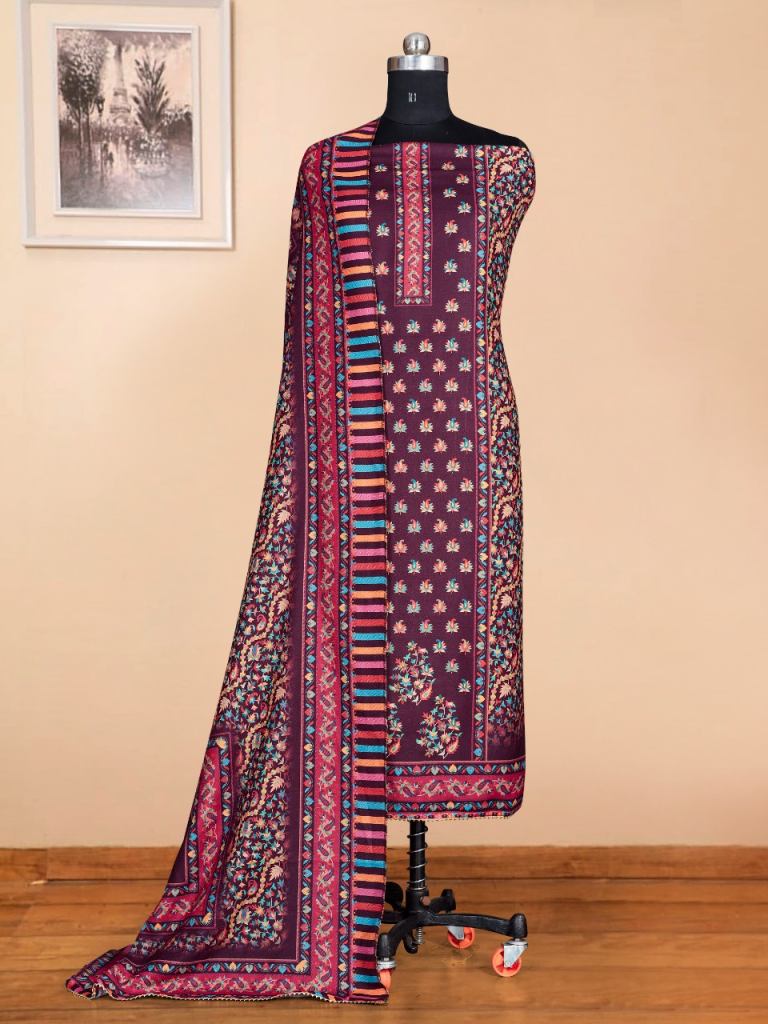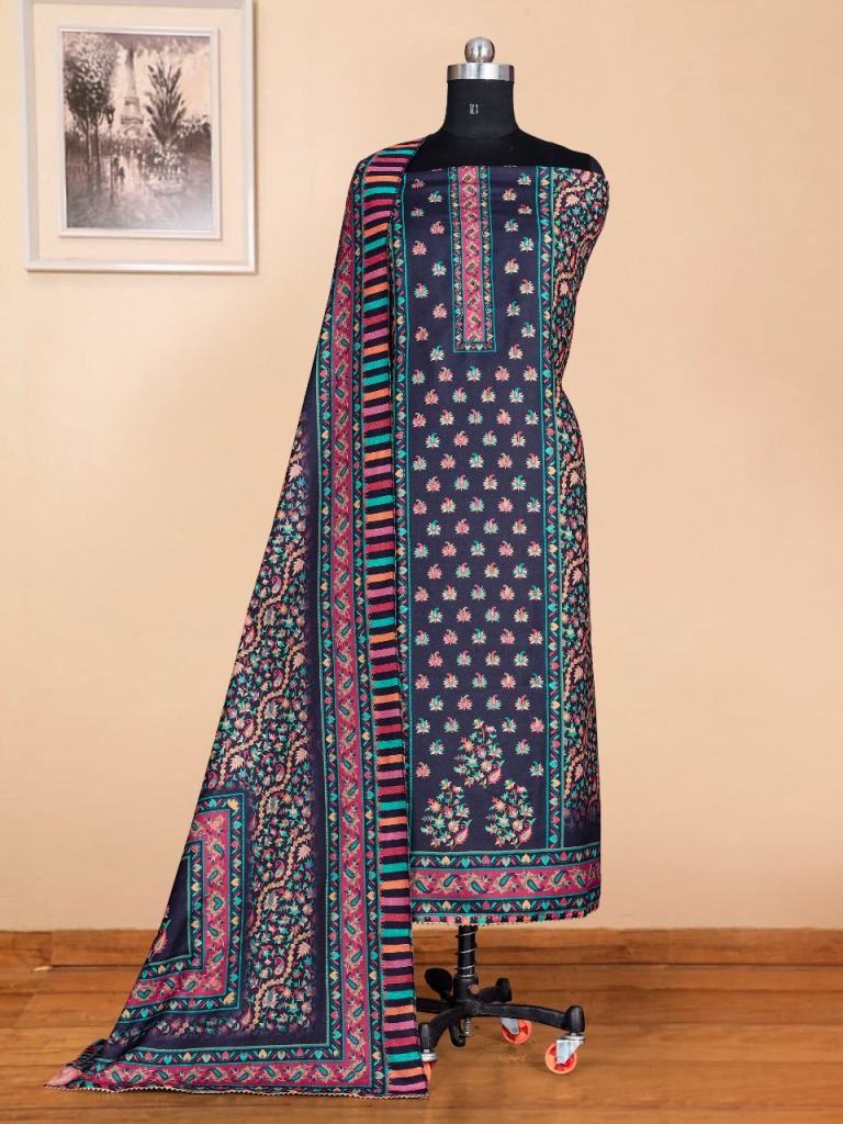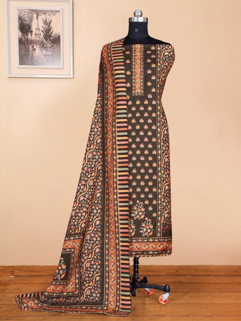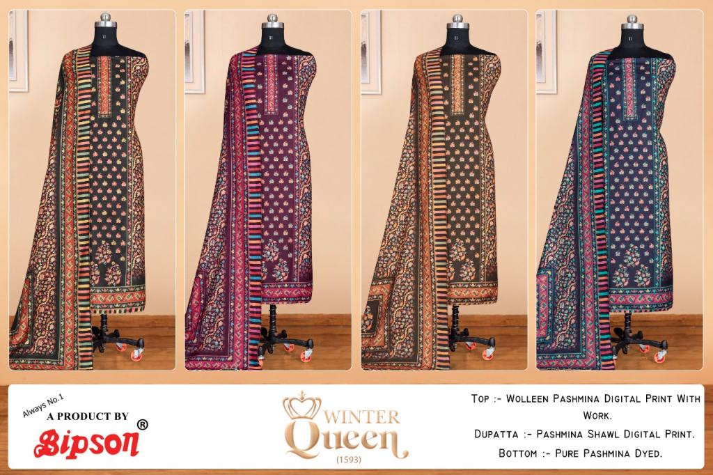 Bipson Winter Queen Dn.1593 Pashmina Dress Material Catalog, this catalog fabric is Wolleen Pashmina Digital Print and the bottom fabric is Pure Pashmina Dyed and dupatta fabric is Pashmina Shawl Digital Print.