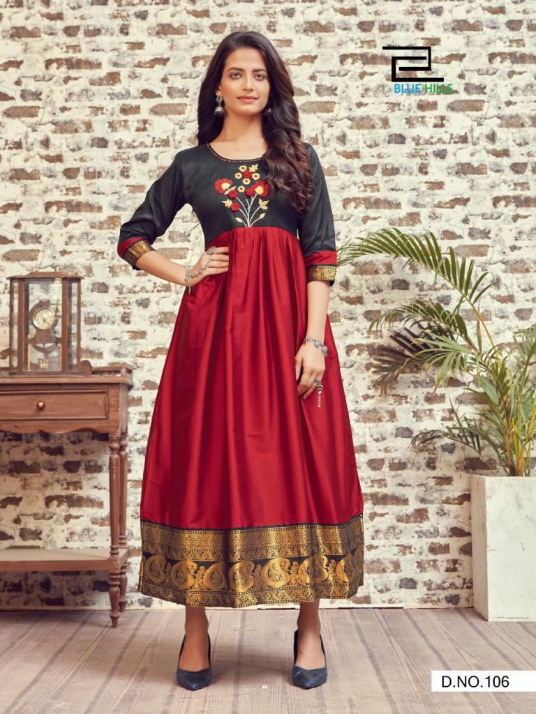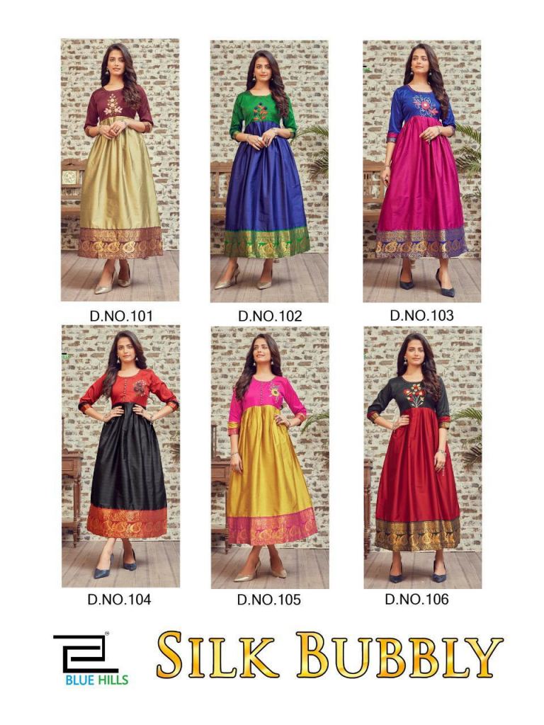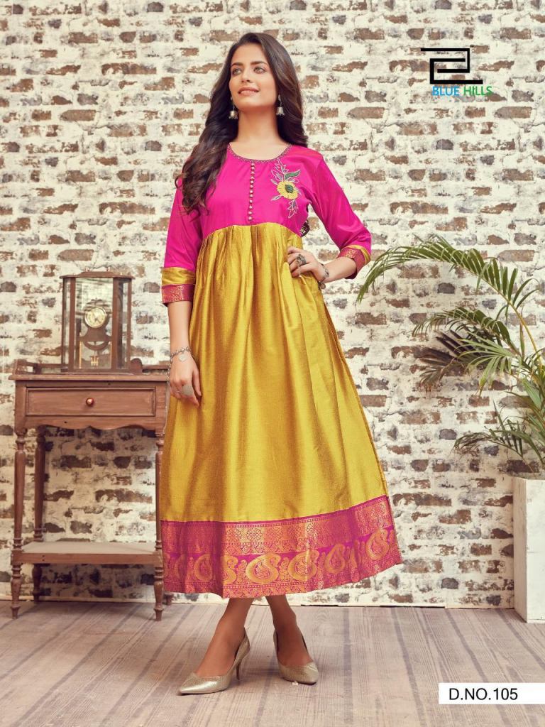 Blue Hills Silk Bublly vol 1 Designer Long Printed Kurti Catalog, this catalog fabric is silk and designer long Kurtis with work in different designs and colors and these catalog colors are the attractive collection.