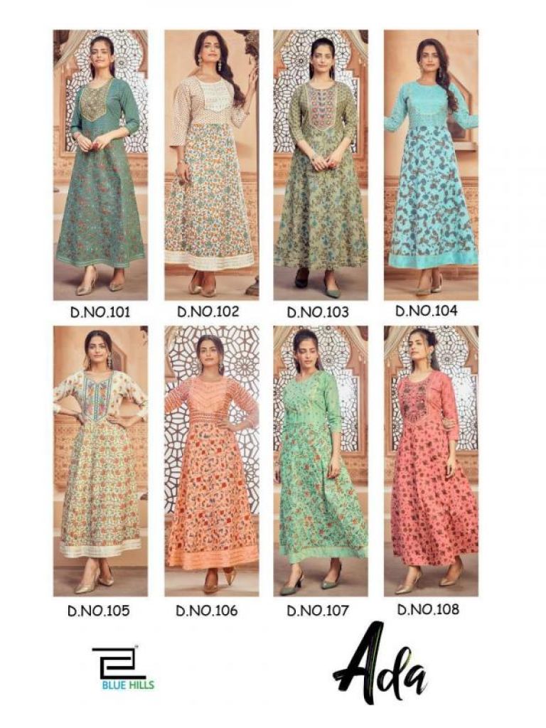 Blue Hills Ada Designer Cotton Anarkali Long Kurti Catalog.