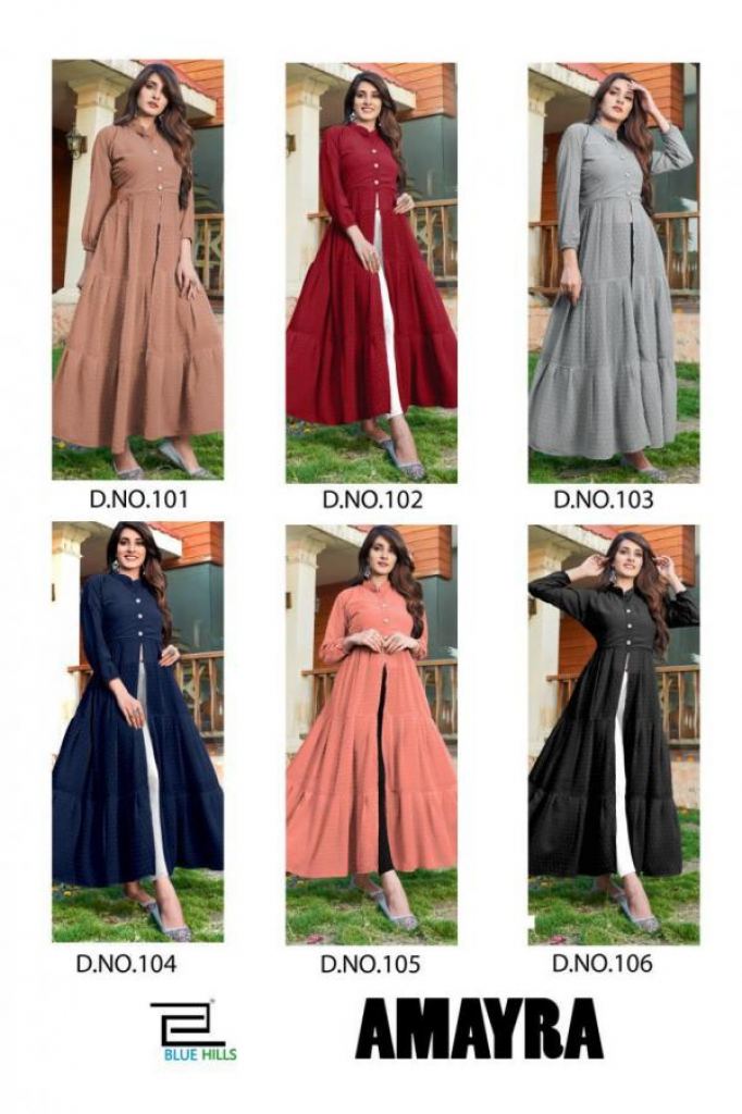 | NAME : | Blue Hills Amayra Georgette Designer Fancy Kurti catalog |