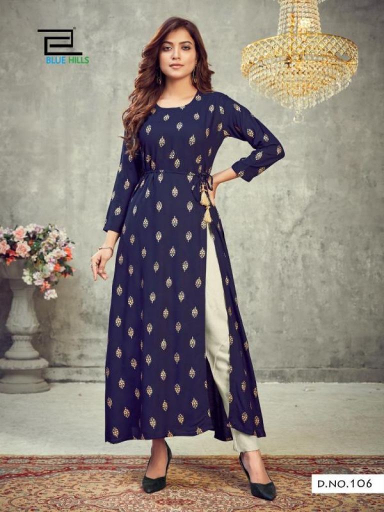 | NAME : | Blue Hills First Date vol 1 Fancy Rayon Side Slit Kurti catalog |