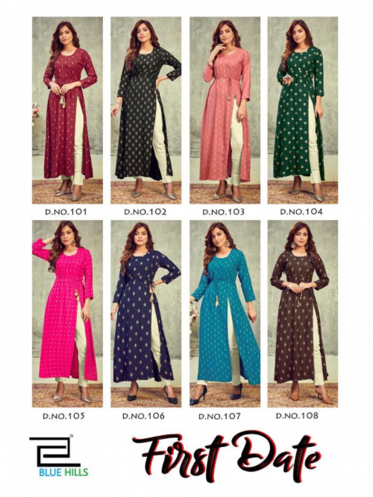 Blue Hills First Date vol 1 Fancy Rayon Side Slit Kurti catalog.