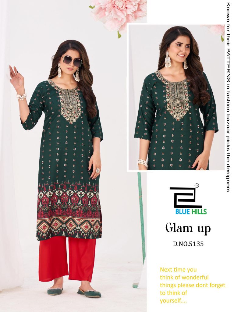 Blue Hills Glam Up Rayon With Work Casual Wear Kurti And Plazzo Collection Full Catalog