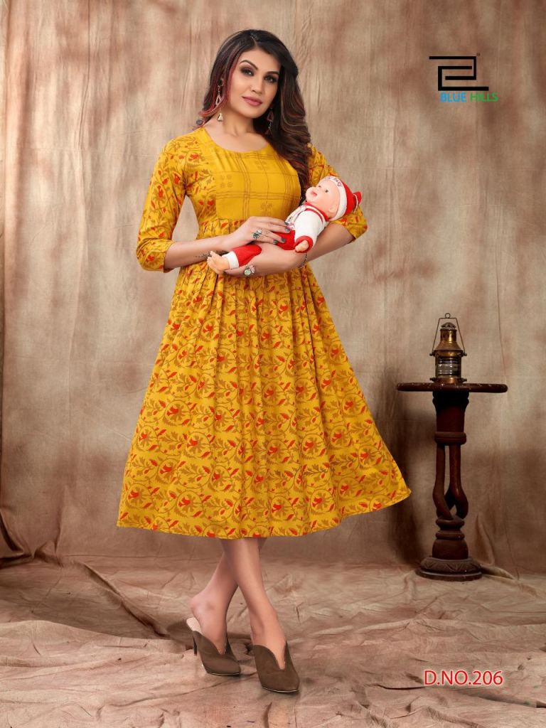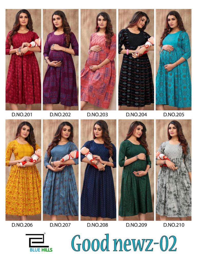 Blue Hills Good News vol 2 Buy Designer Printed Kurti Online For Women Kurti Wholesale Catalog 10 Pc, this catalog fabric is rayon and this top is Rayon Print Style with catalog is A-line with Frill Sleeves and catalog are foil printed collections with different colors and different designs with Anarkali and good news Kurti collection and Kurti length is 45 (Approx).