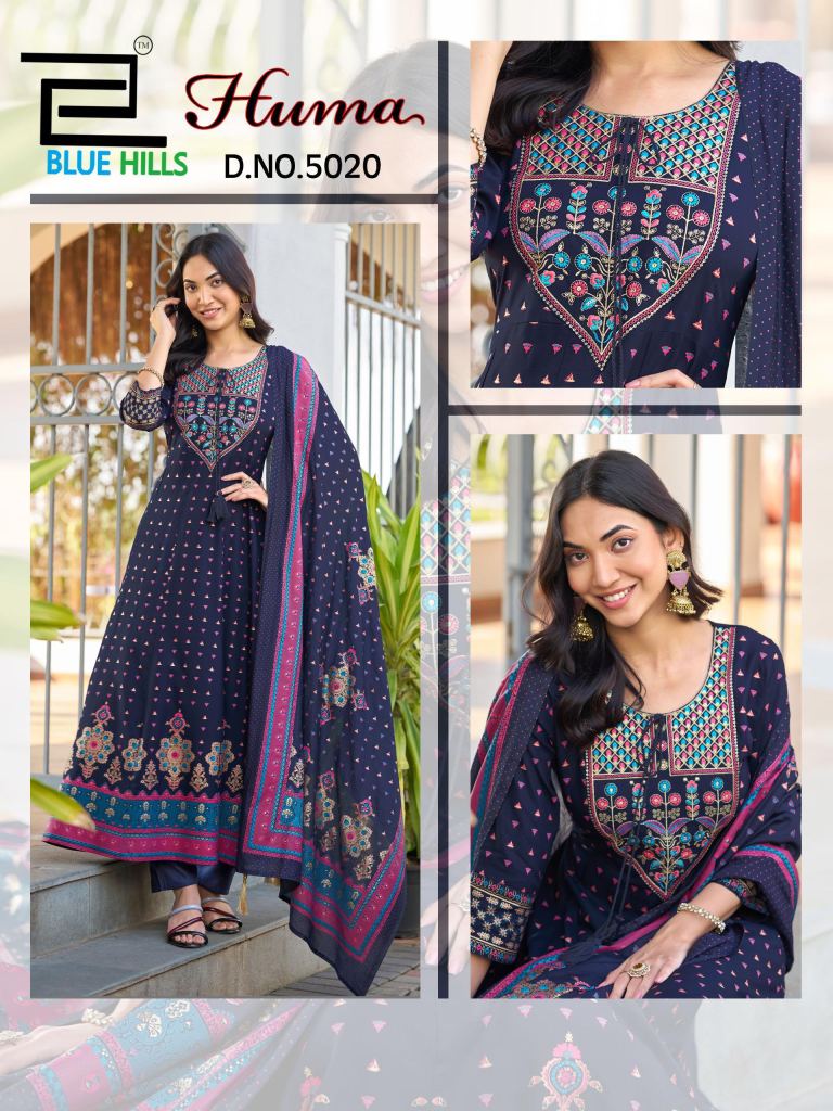 Blue Hills Huma Rayon With Embroidery Work Kurti Pant And Dupatta Full Catalog