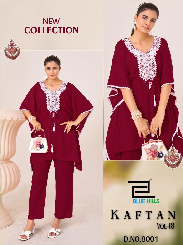 Blue Hills Kaftan Vol 18 Heavy Rayon With Embroidery Kaftan With Pant Collection Full Catalog