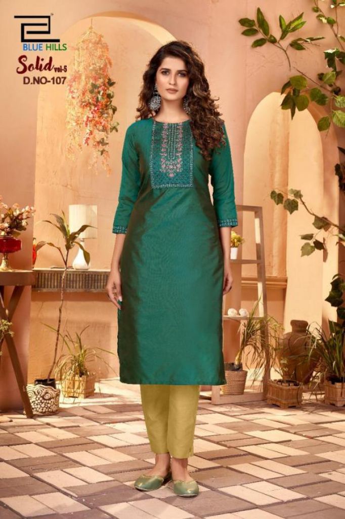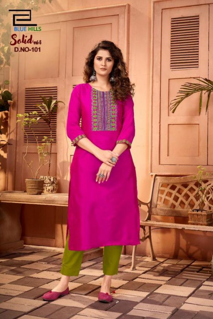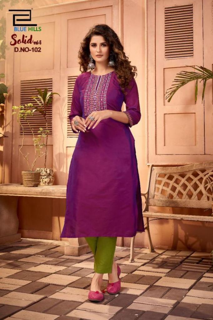 Blue Hills Solid vol 5 Designer Cotton Embroidery Kurtis catalog.