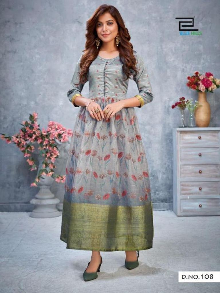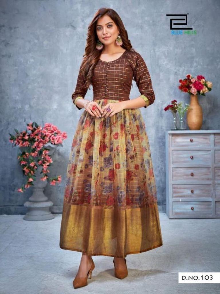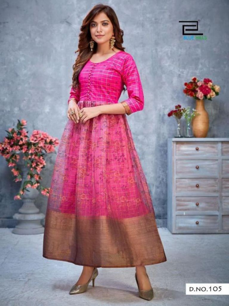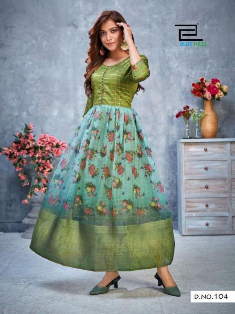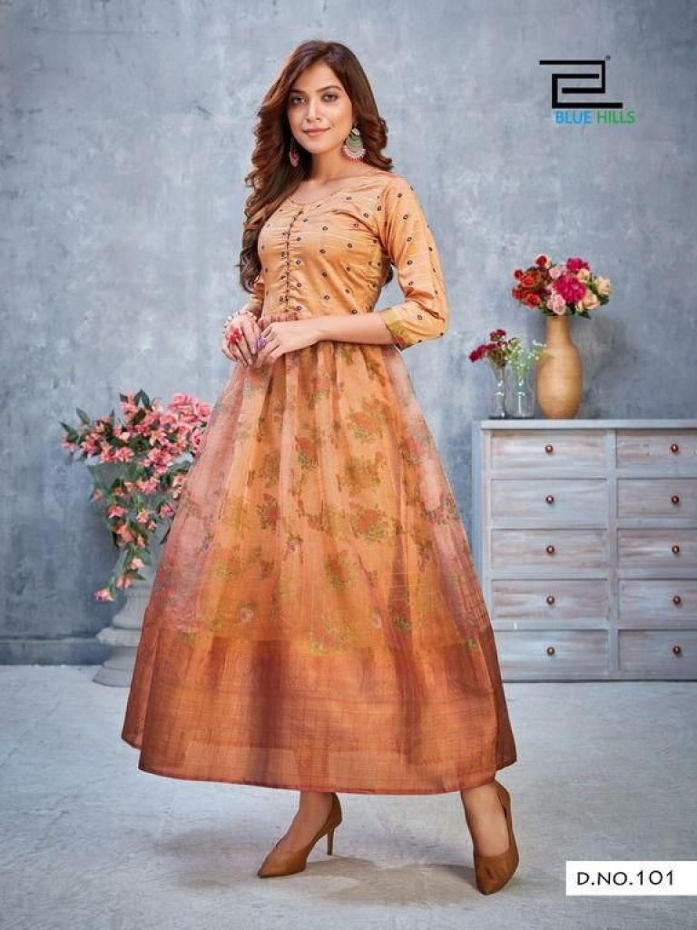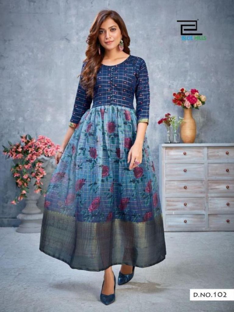 Blue Hills Style vol 4 Designer Organza Ethnic Wear Kurti catalog, this catalog fabric is Organza Digital Print With Silk Butti | Inner: American Crepe | Length: 50+.