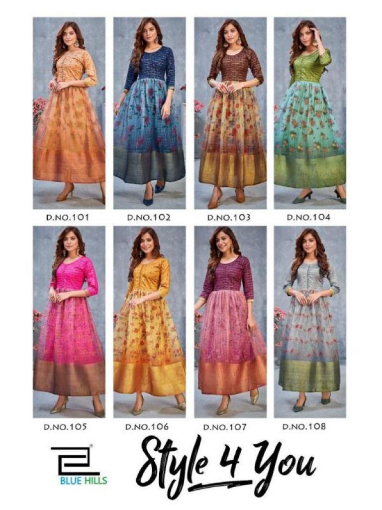 Blue Hills Style vol 4 Designer Organza Ethnic Wear Kurti catalog.