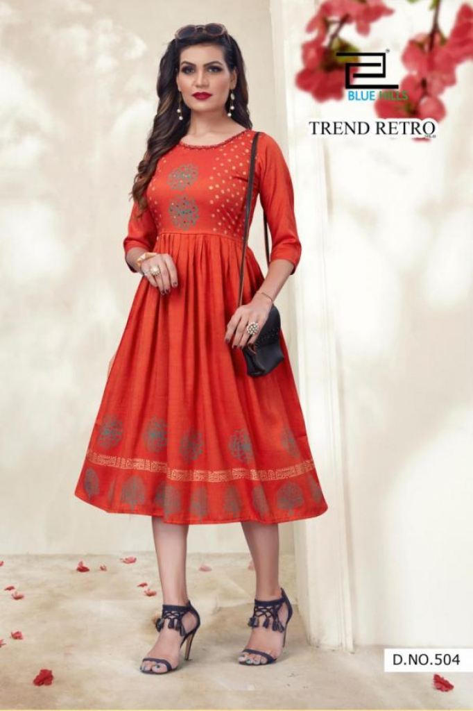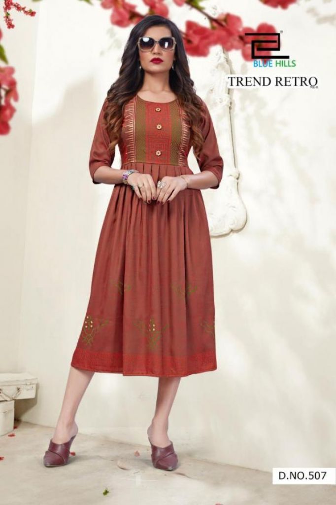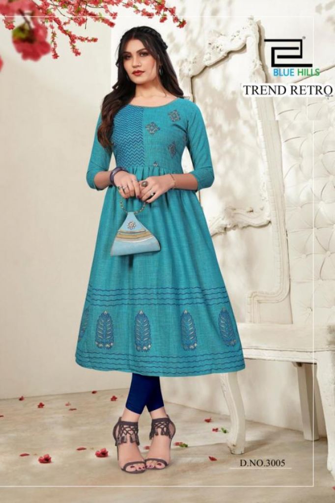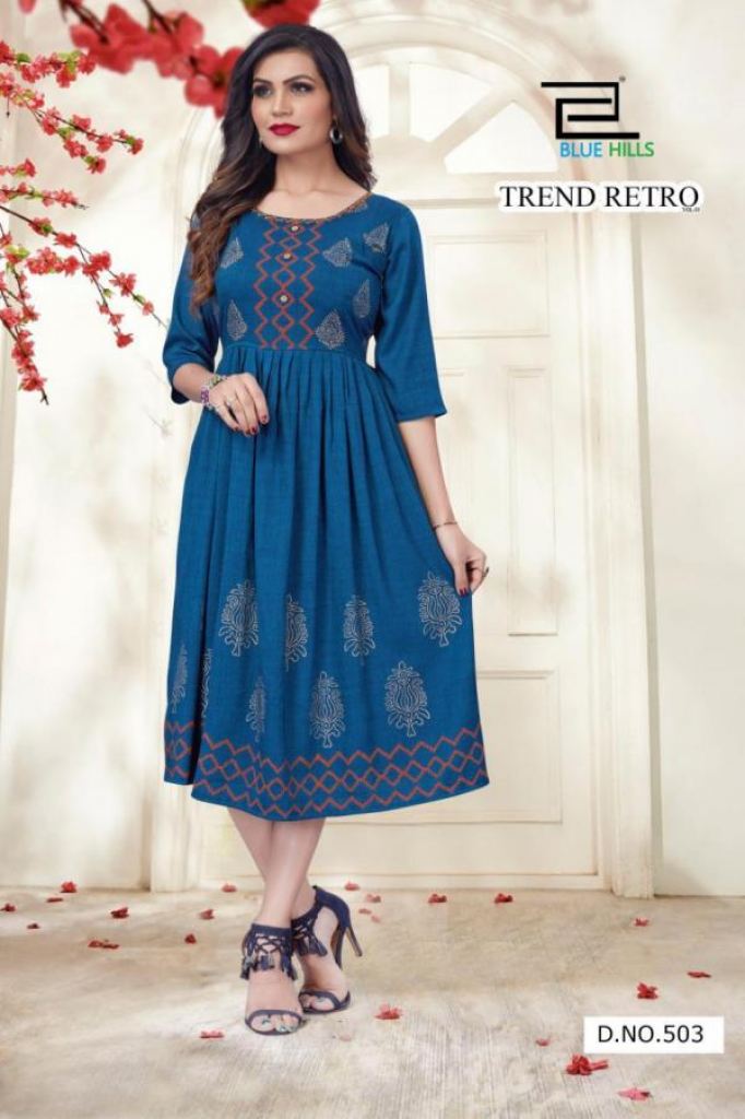| NAME : | Blue Hills Trend Retro vol 3 Rayon Fancy Long Kurti catalog |