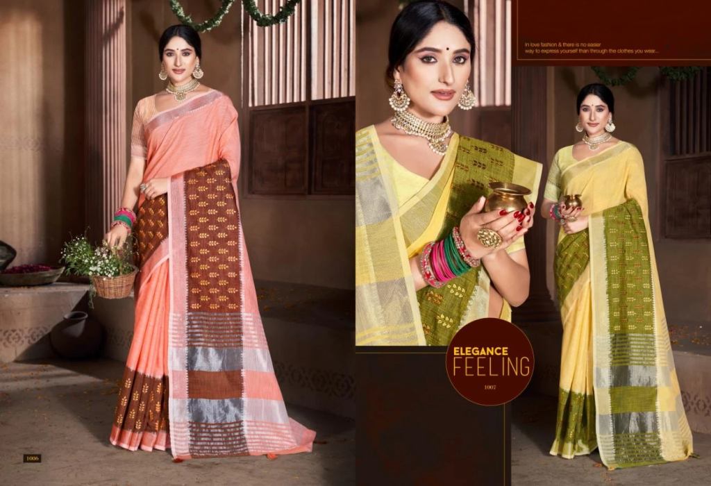 Shop Bunawat Cotton Club Fancy Linen Embroidery Saree Collection Available At Wholesale Rate