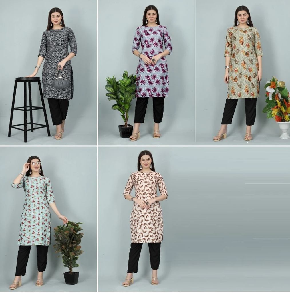 | NAME : | Crepe 01 Casual Wear Crepe Printed Kurti Collection |
