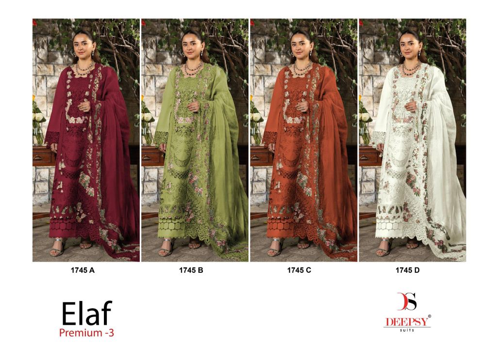| NAME : | Deepsy Elaf 1745 A To D Embroidered Salwar Kameez |