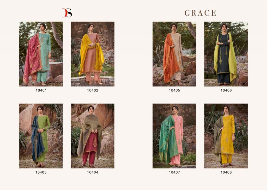 Deepsy Presents Grace Cotton Dress Material Online, this catalog top fabric is Mini silk with embroidery and this catalog bottom fabric is Dull santoon this catalog dupatta fabric is Banaras weave Jequard with catalog is a different color and different designs with catalog in embroidery work the catalog is super hit dress collection.
