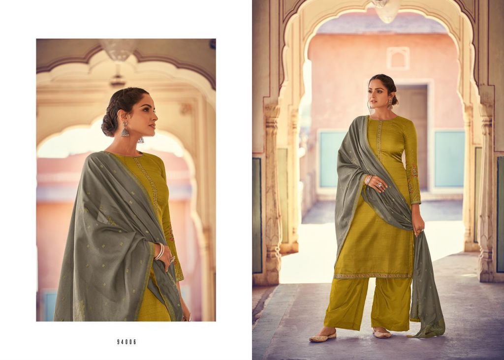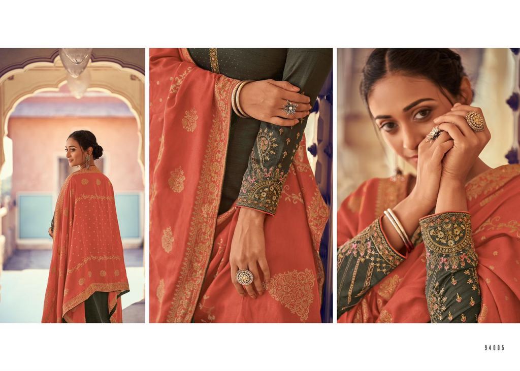 Deepsy presents Monalisa vol 4 Designer Dress Material, this catalog top is nahya silk self weave with embroidery, and the bottom is Dull santoon and dupatta banaras weave jacquard and design are attractive printed design in different colors.