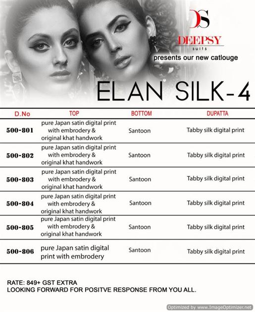 | NAME : | Deepsy Elan Silk 4 pakistani suit catalogue |