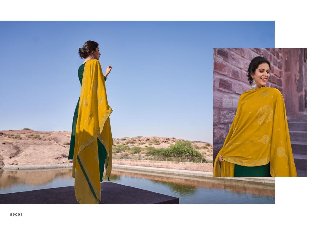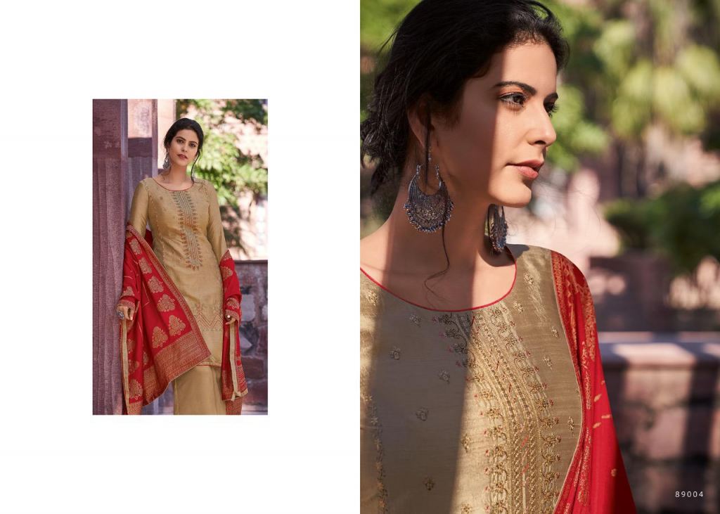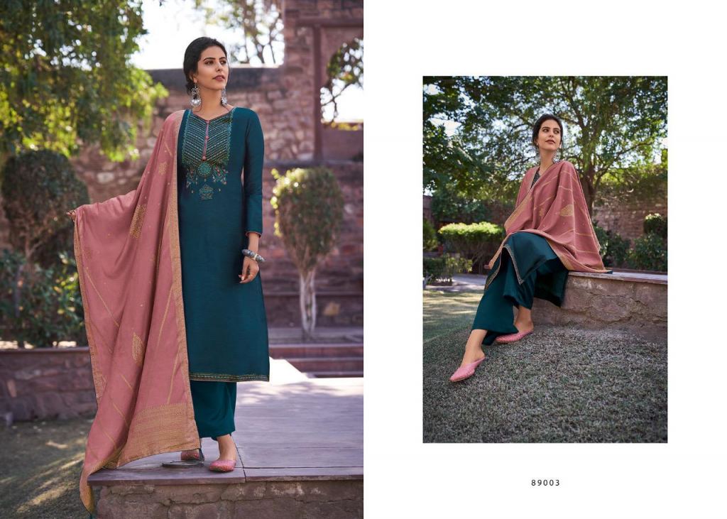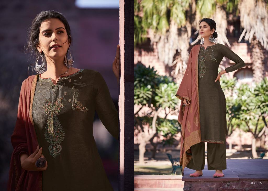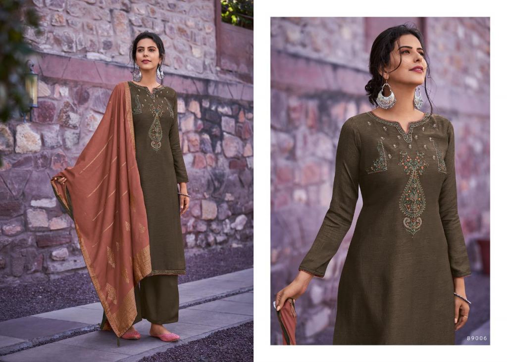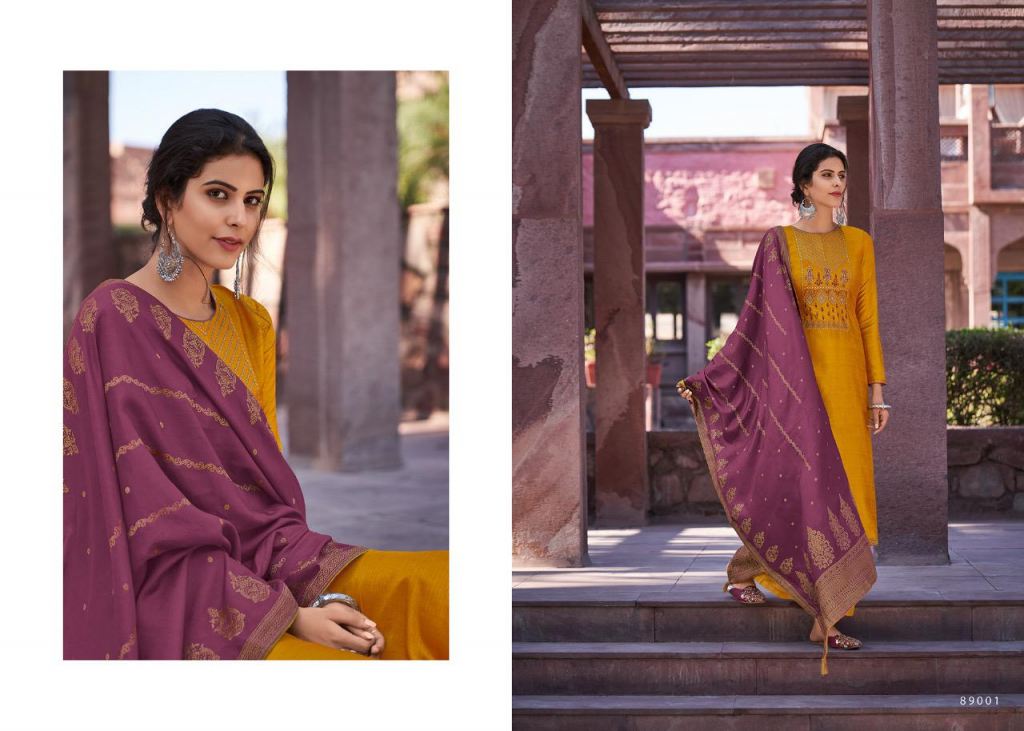 Deepsy presents Mirai Ethnic Wear Dress Material Collection, this catalog design is an attractive embroidery work design in different colors this catalog top is Mulberry silk with embroidery work and the bottom is santoon and dupatta is banarasi weave jacquard fore side lace.