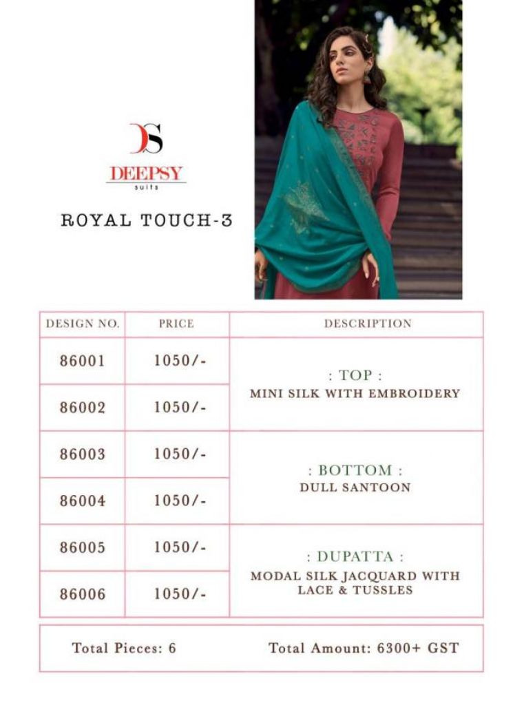 Deepsy presents Royal Touch vol 3 Designer Dress Material, this catalog mini silk with embroidery work.